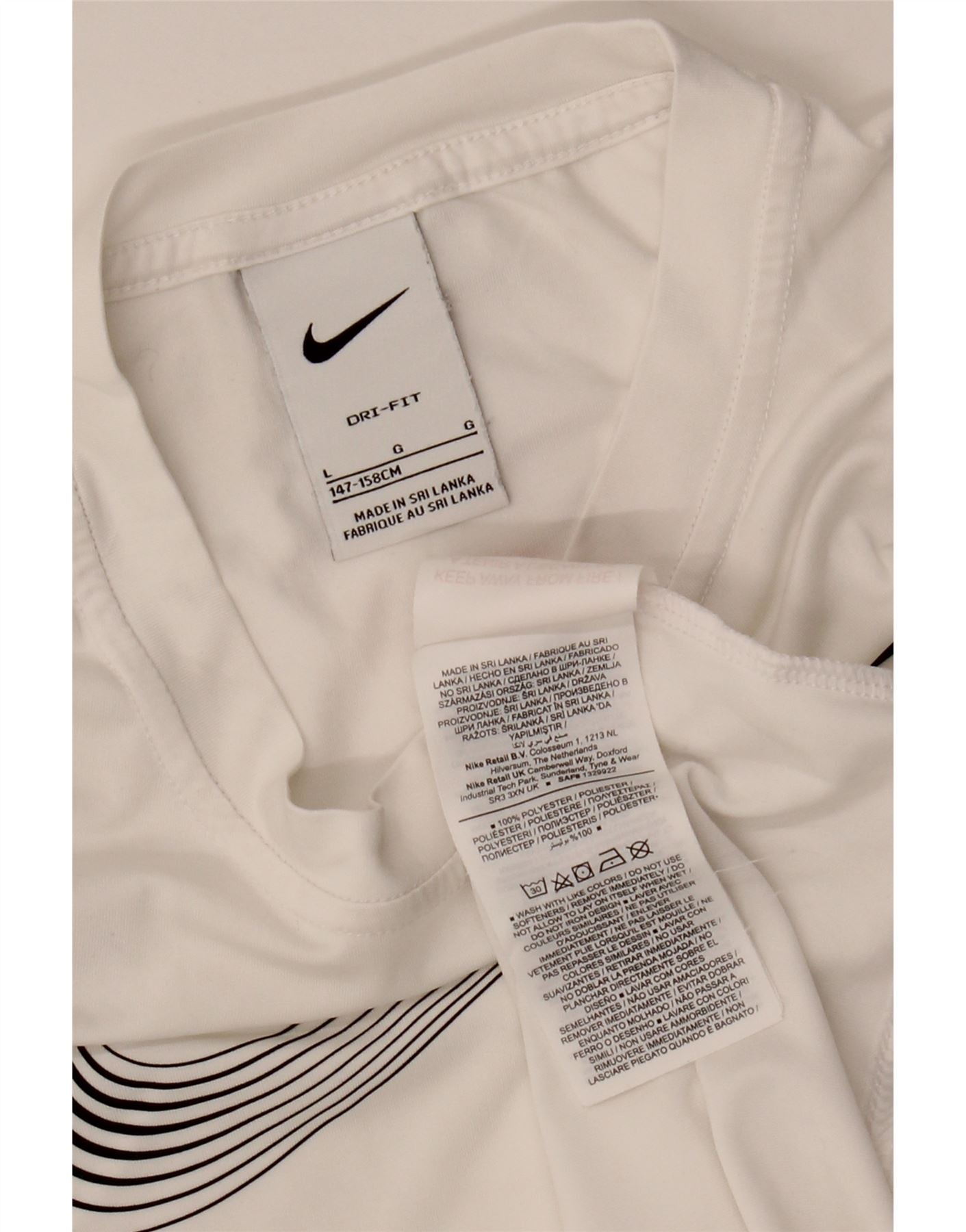 NIKE Girls Dri Fit Graphic T-Shirt Top 12-13 Years Large White Polyester