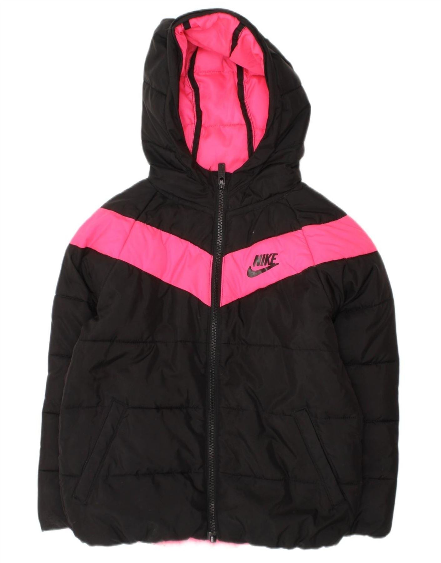 Kurtka dziewczęca z kapturem i wyściełaną NIKE, 5-6 lat, w średnim kolorze czarnym