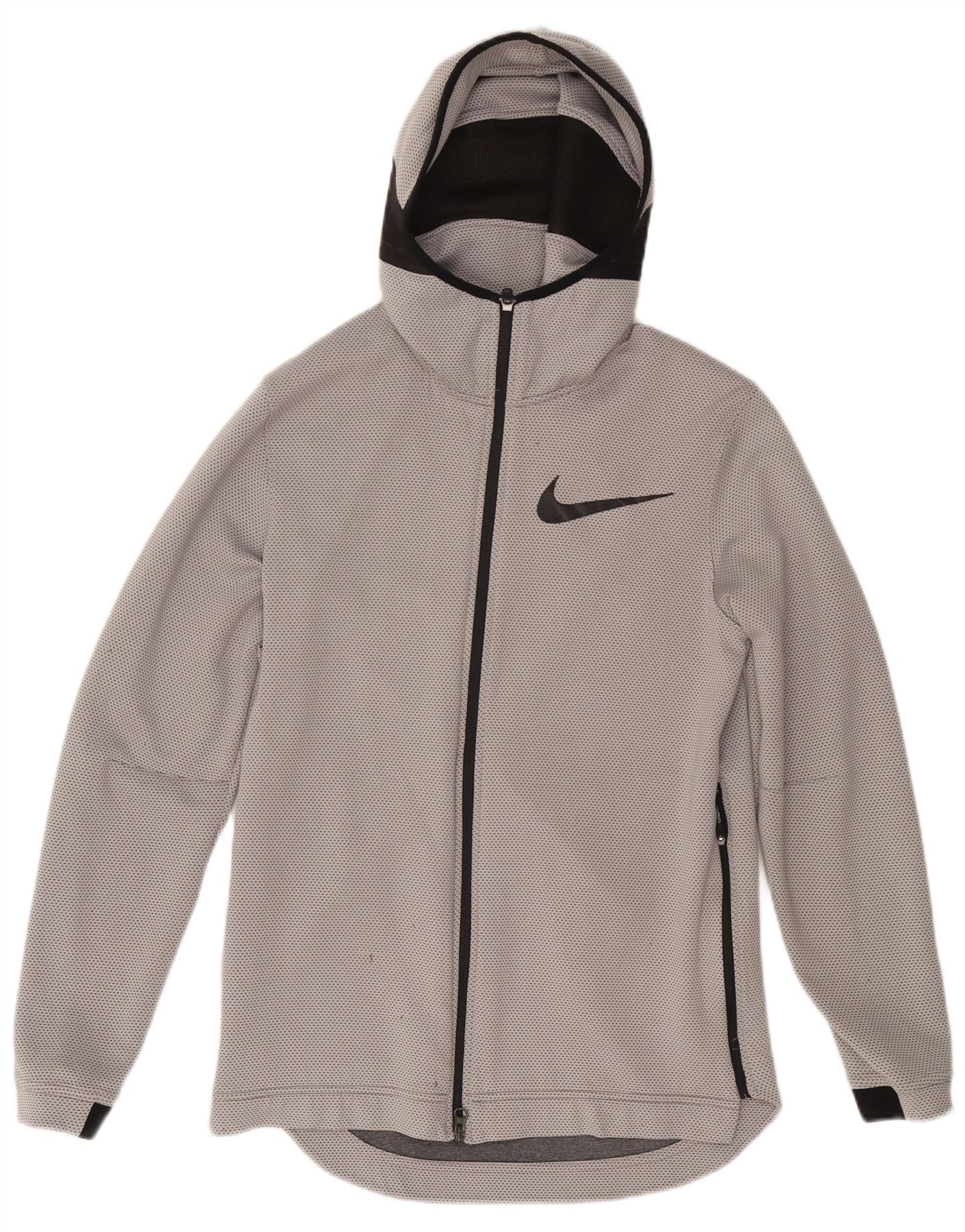 Męski sweter z kapturem i zamkiem do koszykówki NIKE, mały, szary, poliestrowy