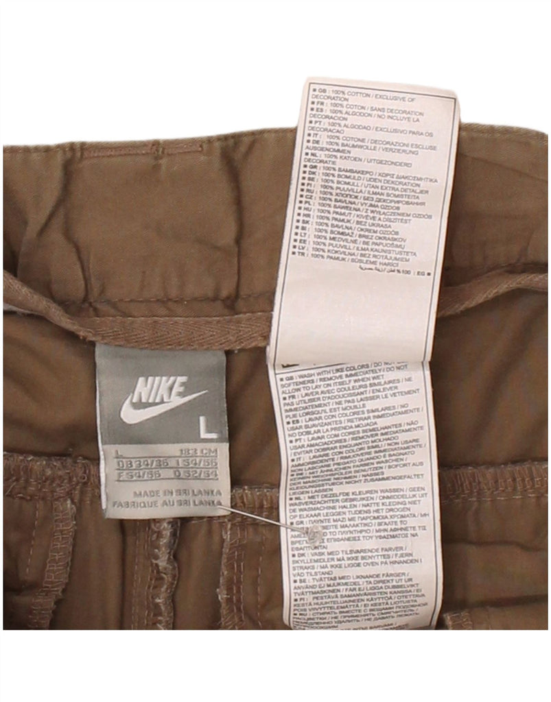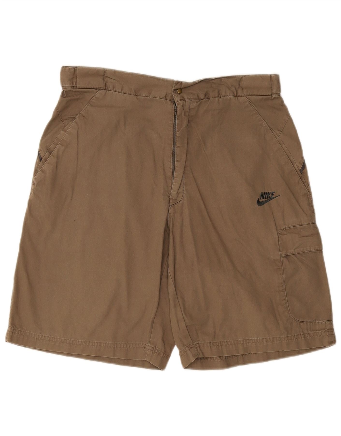 - AI Description: This Nike mens cargo shorts are crafted from durable 100 percent cotton woven fabric. The khaki colour offers a versatile, earthy tone. A button closure secures the waist for a classic fit. These shorts feature a relaxed fit, ensuring comfort and ease of movement. Multiple practical pockets provide ample storage. The design is straightforward and functional, perfect for everyday wear.