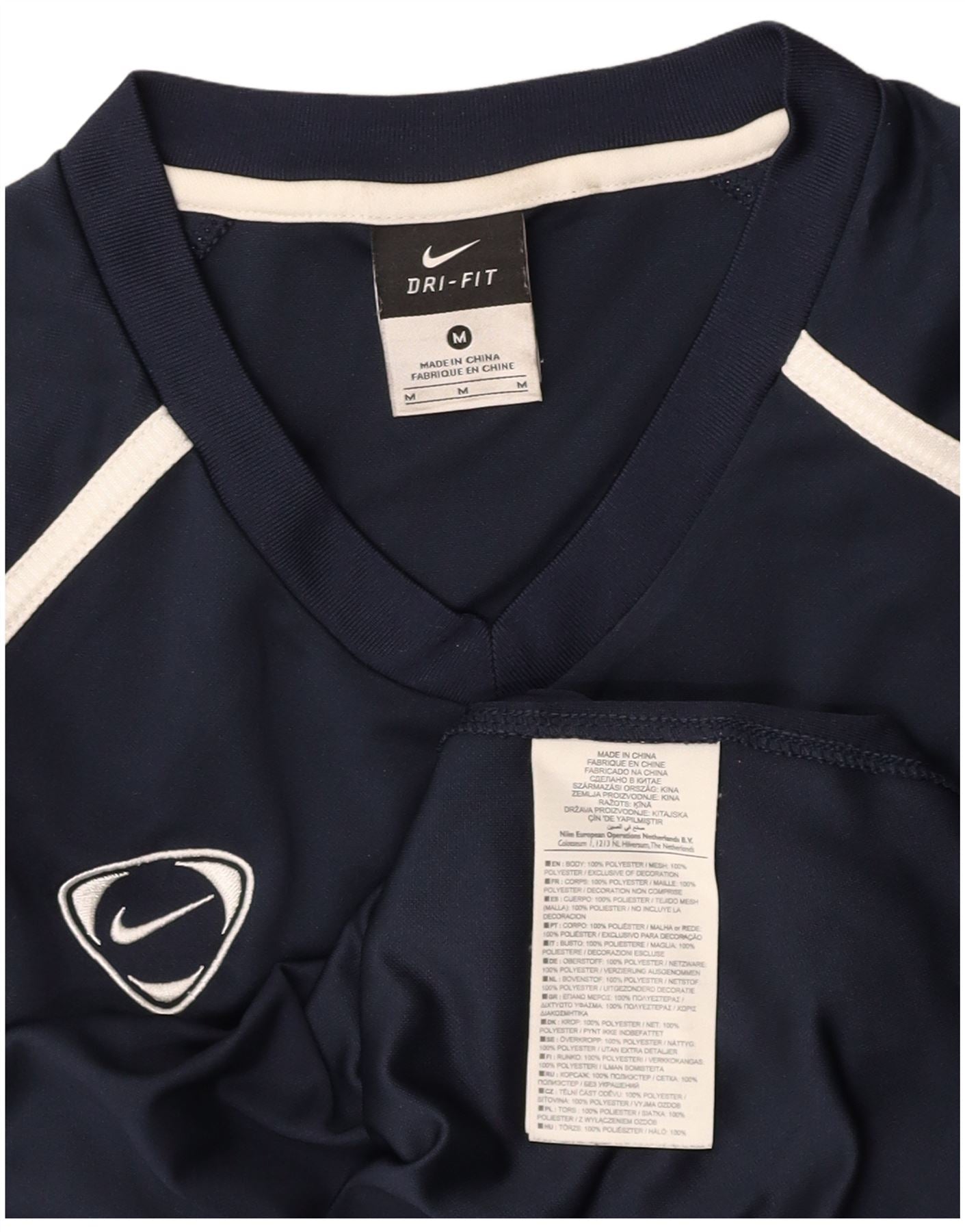 NIKE Mens Dri Fit T-Shirt Top Medium Navy Blue Colourblock Polyester