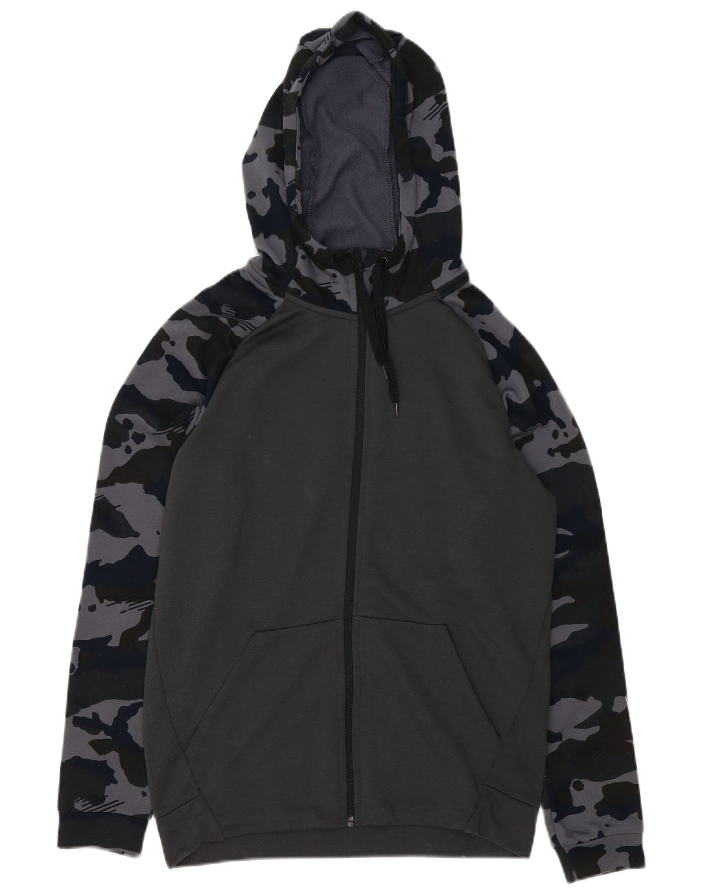 NIKE Mens Dri Fit Zip Hoodie Sweater Small Grey Camouflage Polyester
