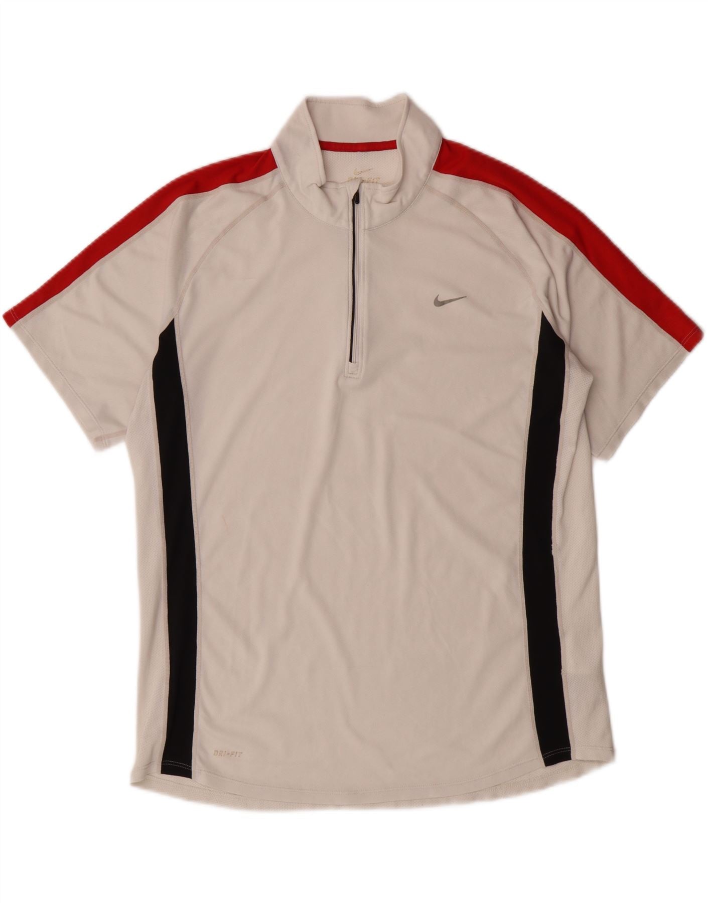 NIKE Mens Dri Fit Zip Neck T-Shirt Top Large White Colourblock Polyester