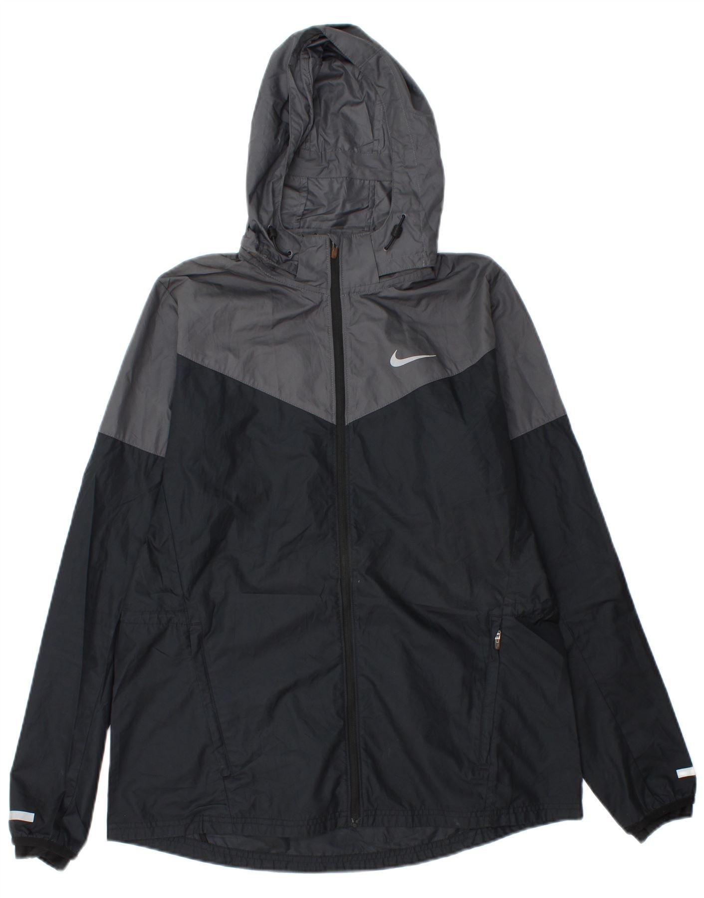 Męska kurtka przeciwdeszczowa z kapturem NIKE UK 40, duży, czarny poliester z blokami kolorów