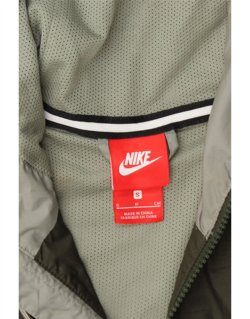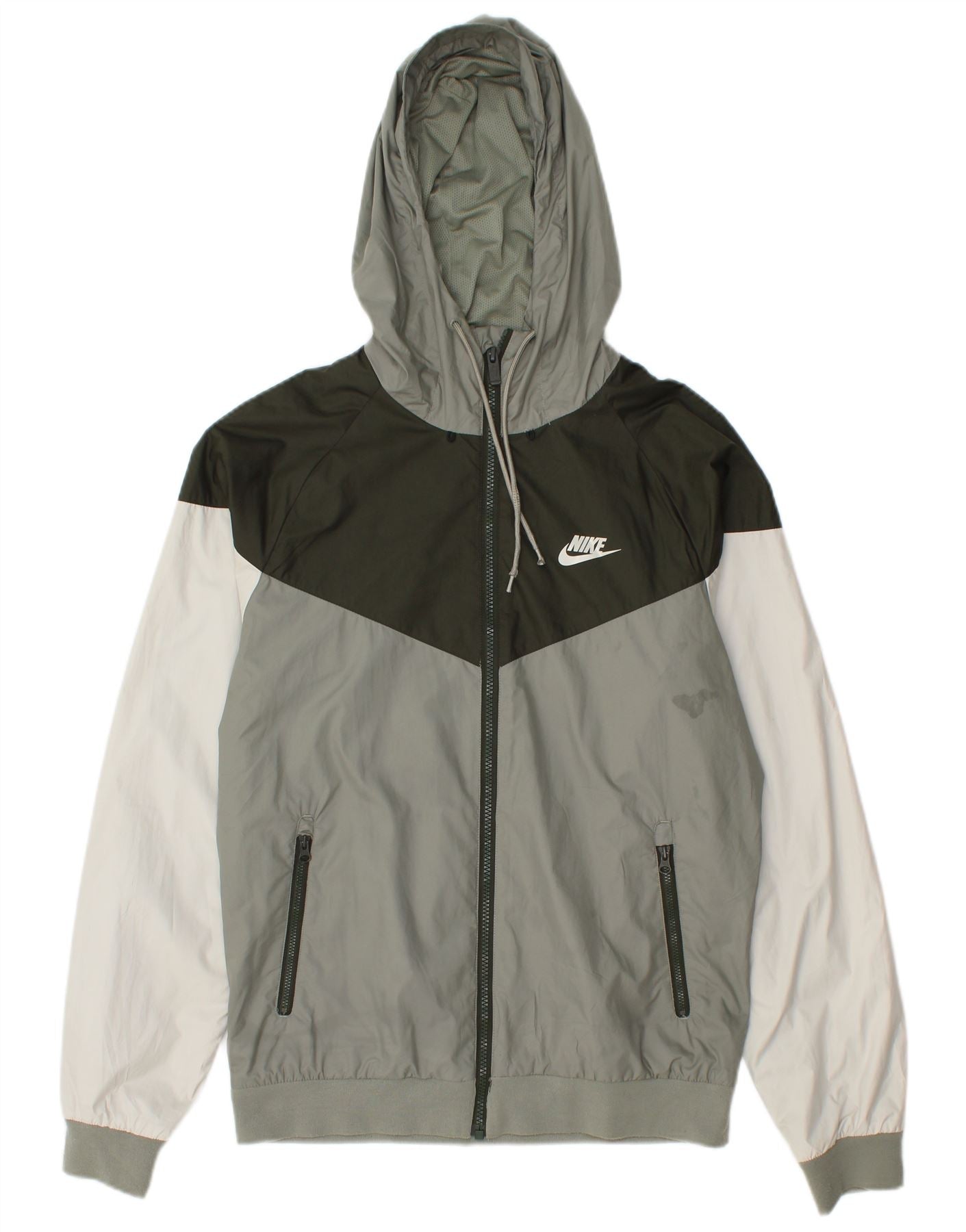 Męska kurtka wiatrówka z kapturem NIKE UK 36, mały szary poliester w blokach kolorów