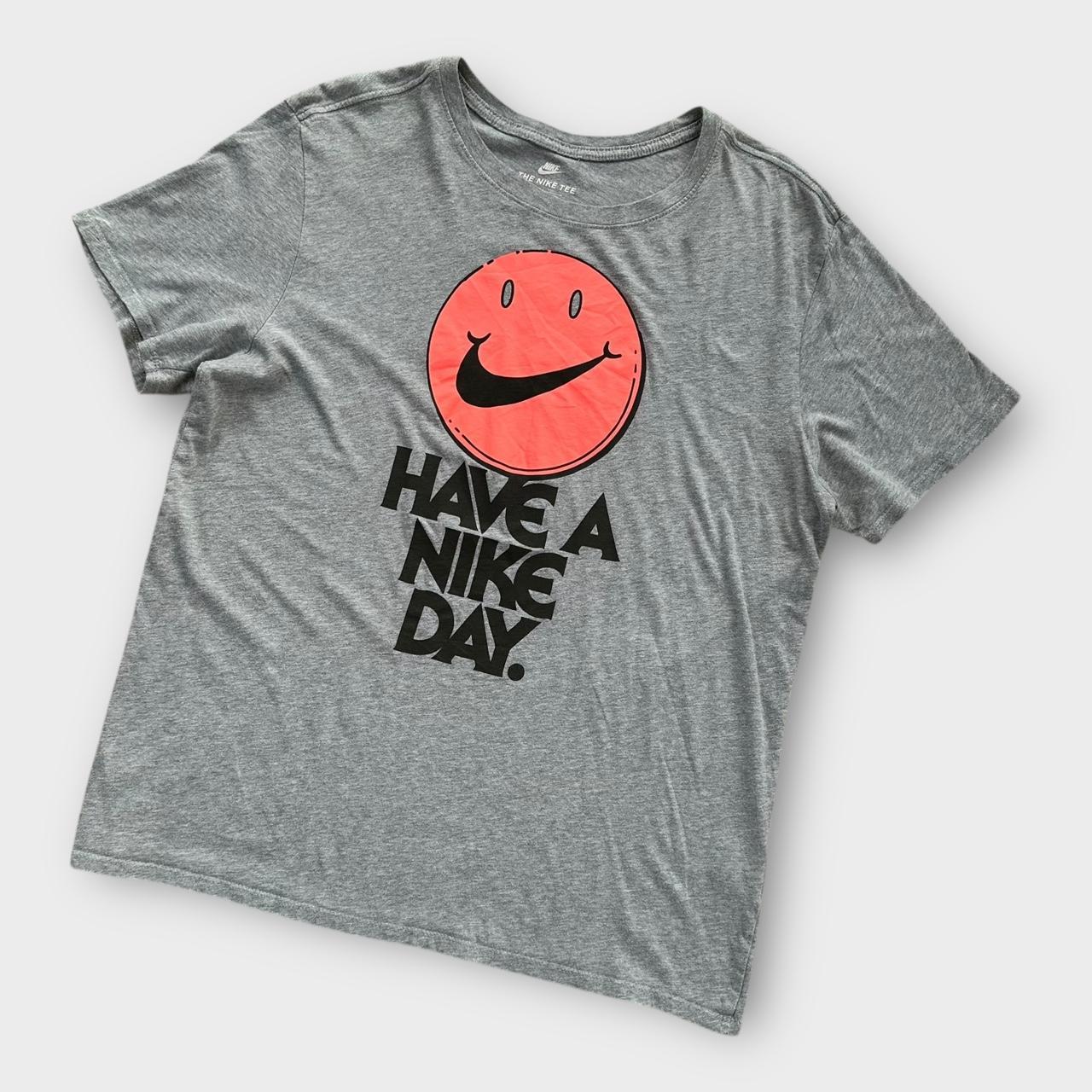 Szara koszulka z graficznym nadrukiem Nike „Have a Nike day”.