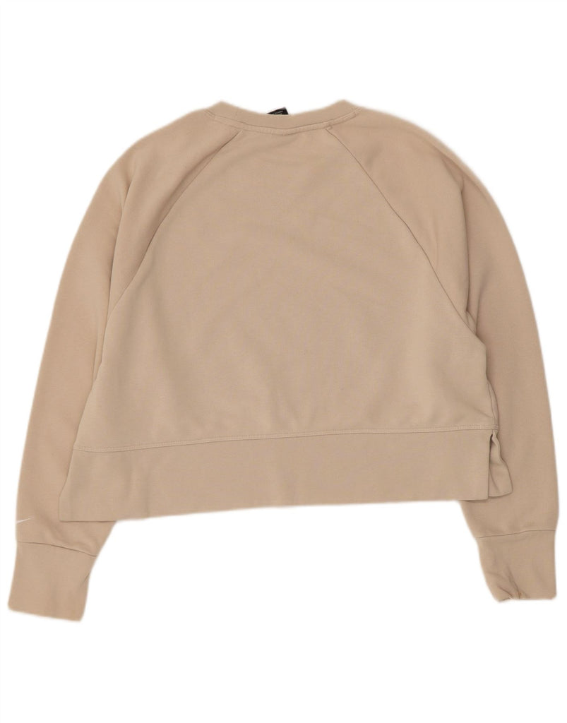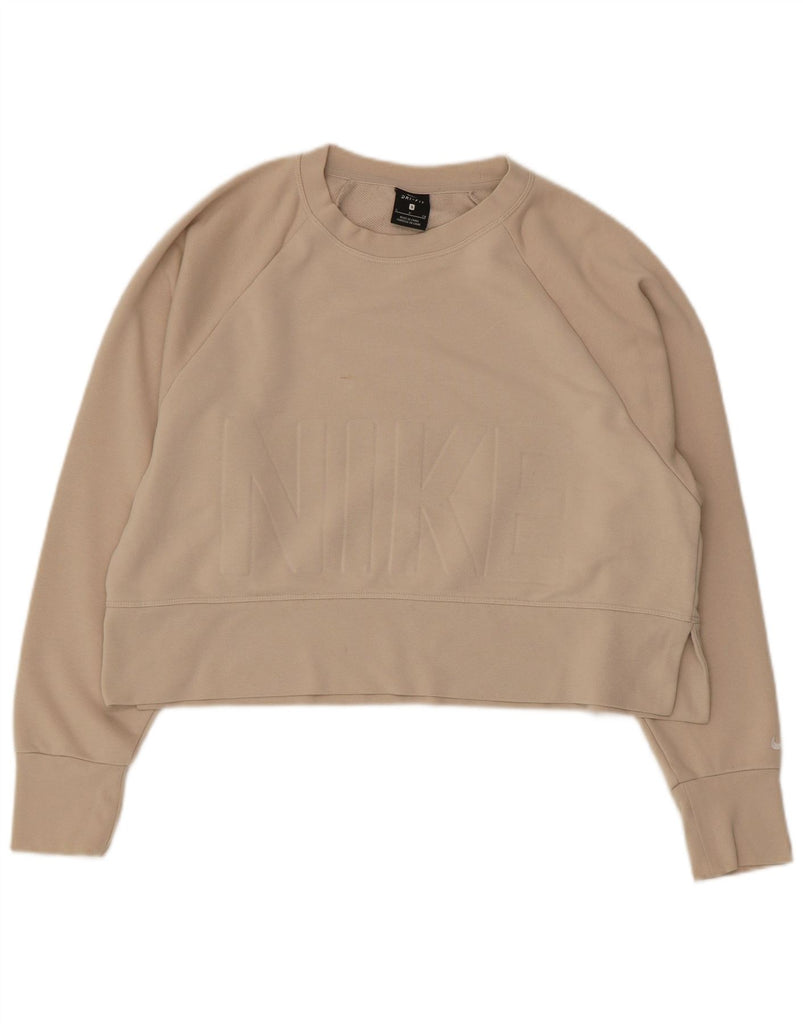 NIKE Womens Crop Oversized Graphic Sweatshirt Jumper UIK 10 Small Beige