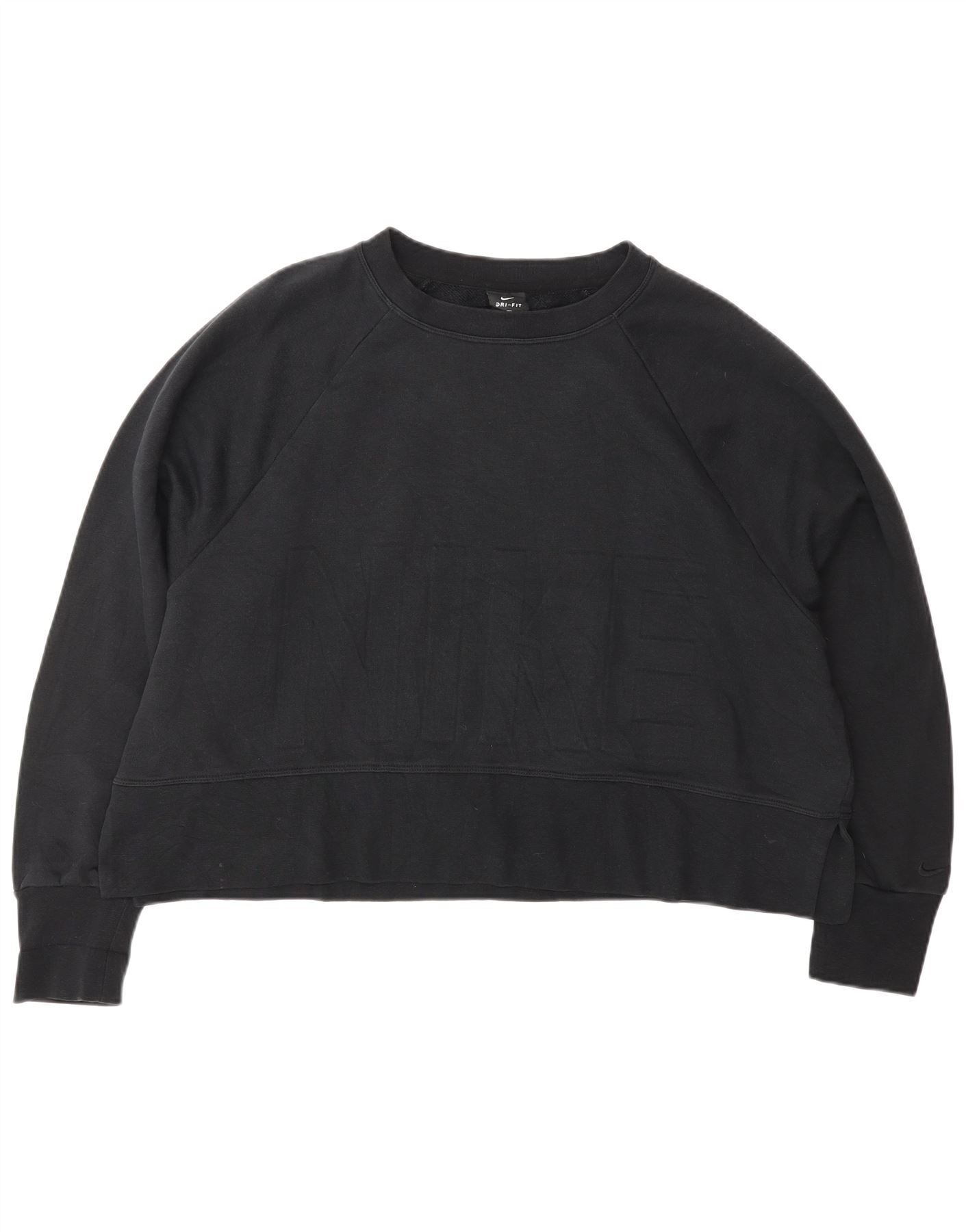 NIKE Womens Crop Oversized Graphic Sweatshirt Jumper UK 16 Large Black