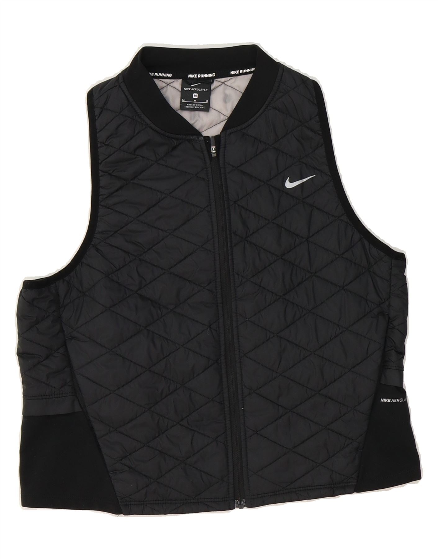NIKE Womens Crop Quilted Gilet UK 14 Medium Black Polyester
