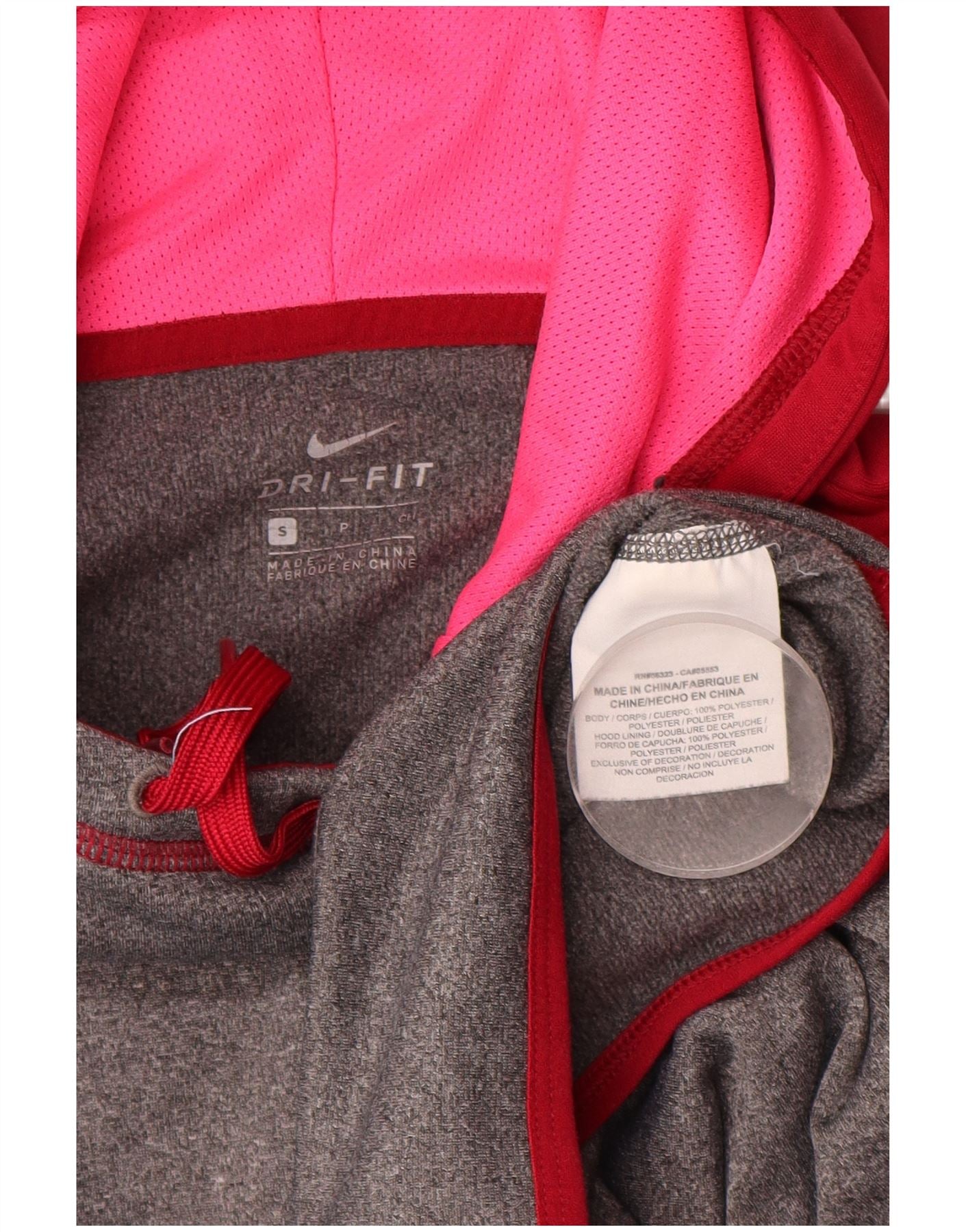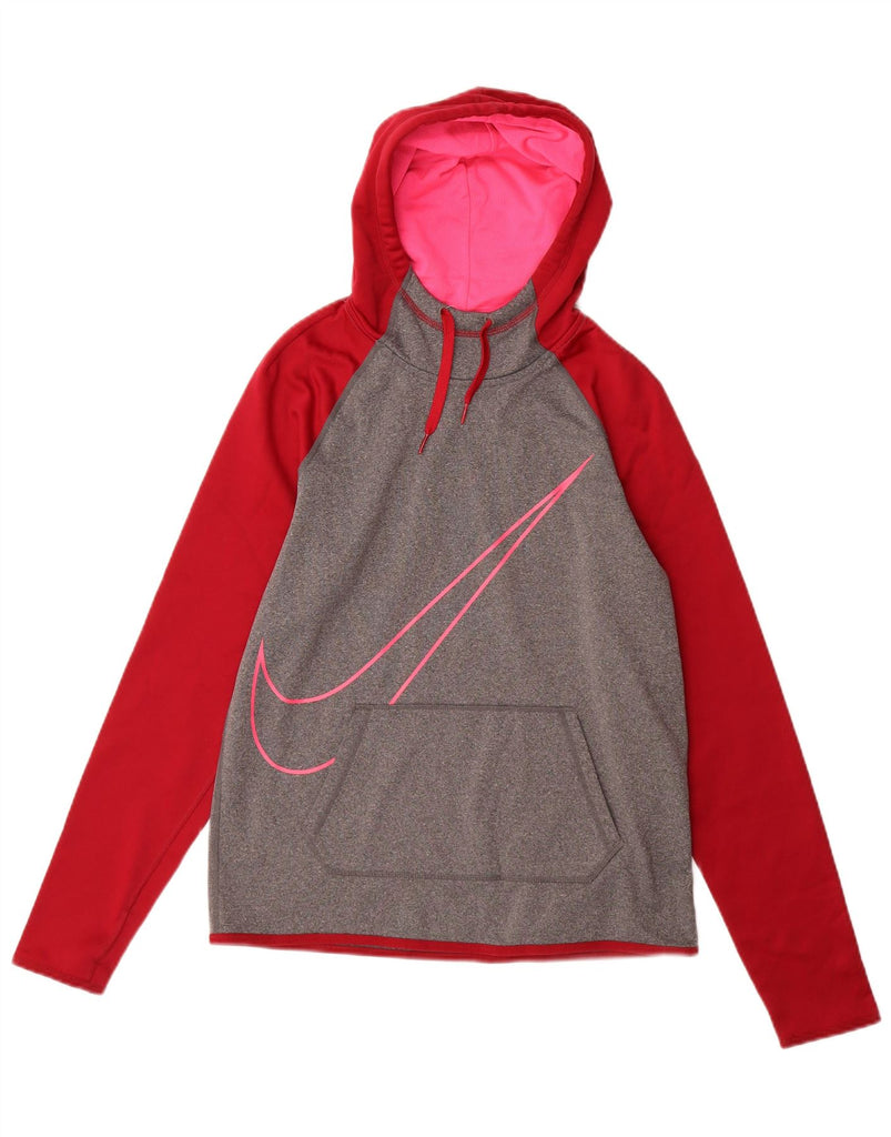 Damska bluza z kapturem NIKE Dri Fit Graphic UK 10, mała, szara, z blokami kolorów