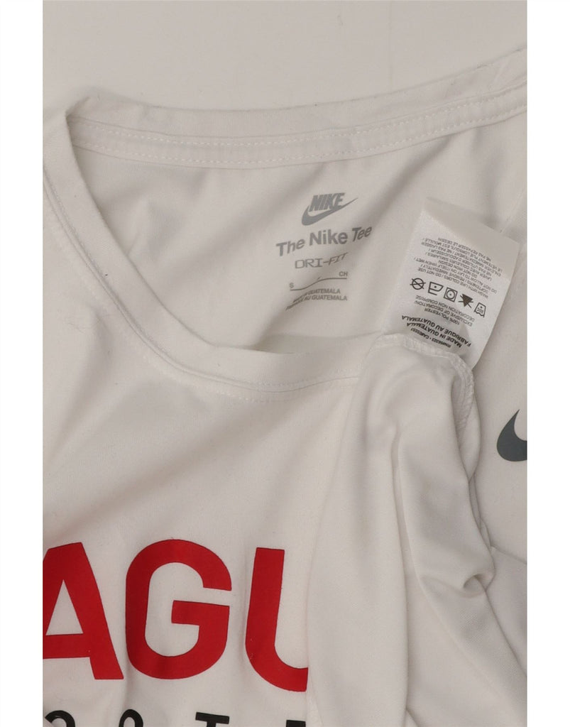 Damska koszulka NIKE Dri Fit z grafiką Top UK 10, mała, biała, poliestrowa