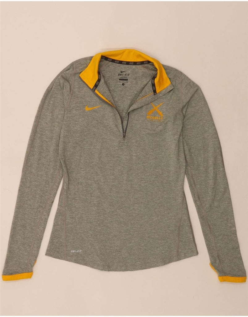 NIKE Womens Dri Fit Pullover Tracksuit Top UK 10 Small Khaki Flecked