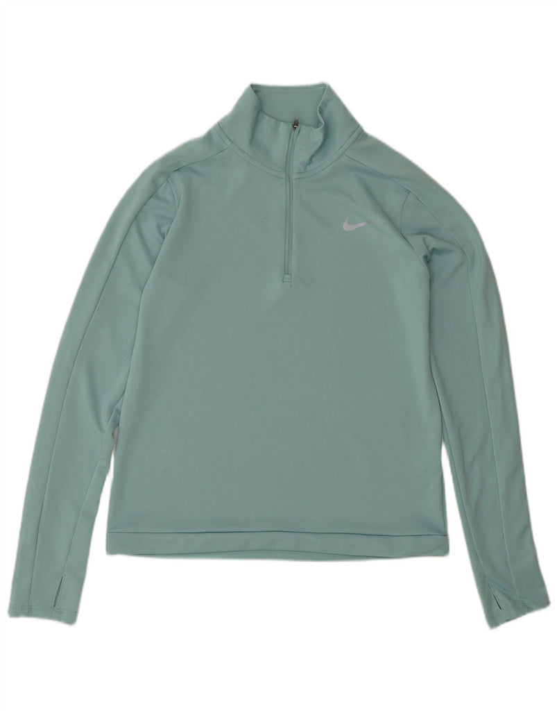 NIKE Womens Dri Fit Zip Neck Pullover Tracksuit Top UK 10 Small Turquoise