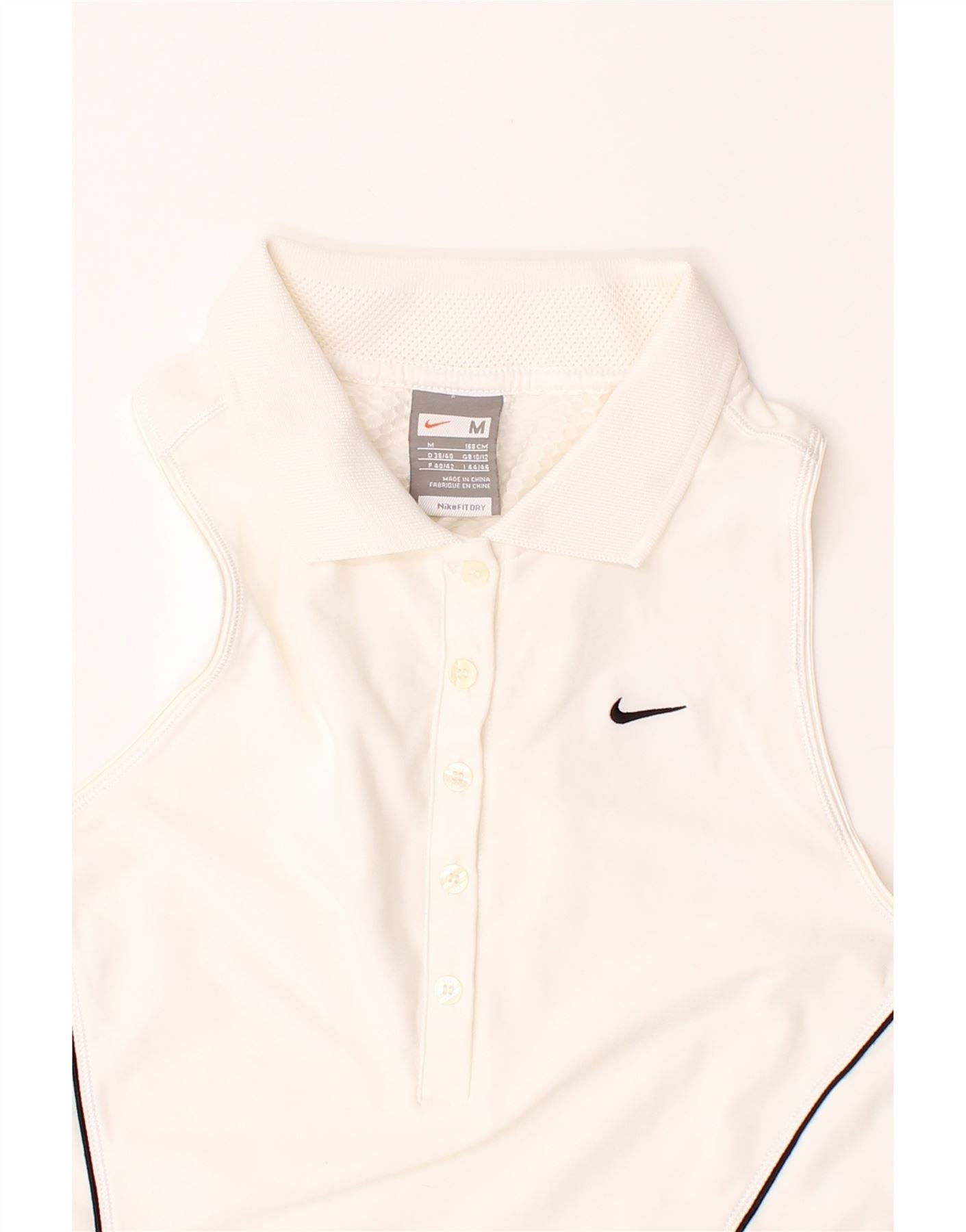 NIKE Womens Fit Dry Sleeveless Polo Shirt UK 10/12 Medium White Polyester