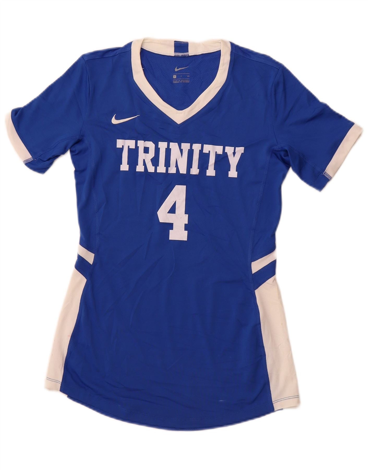 Damska koszulka z grafiką NIKE Top UK 10, mały, niebieski, poliester z blokami kolorów