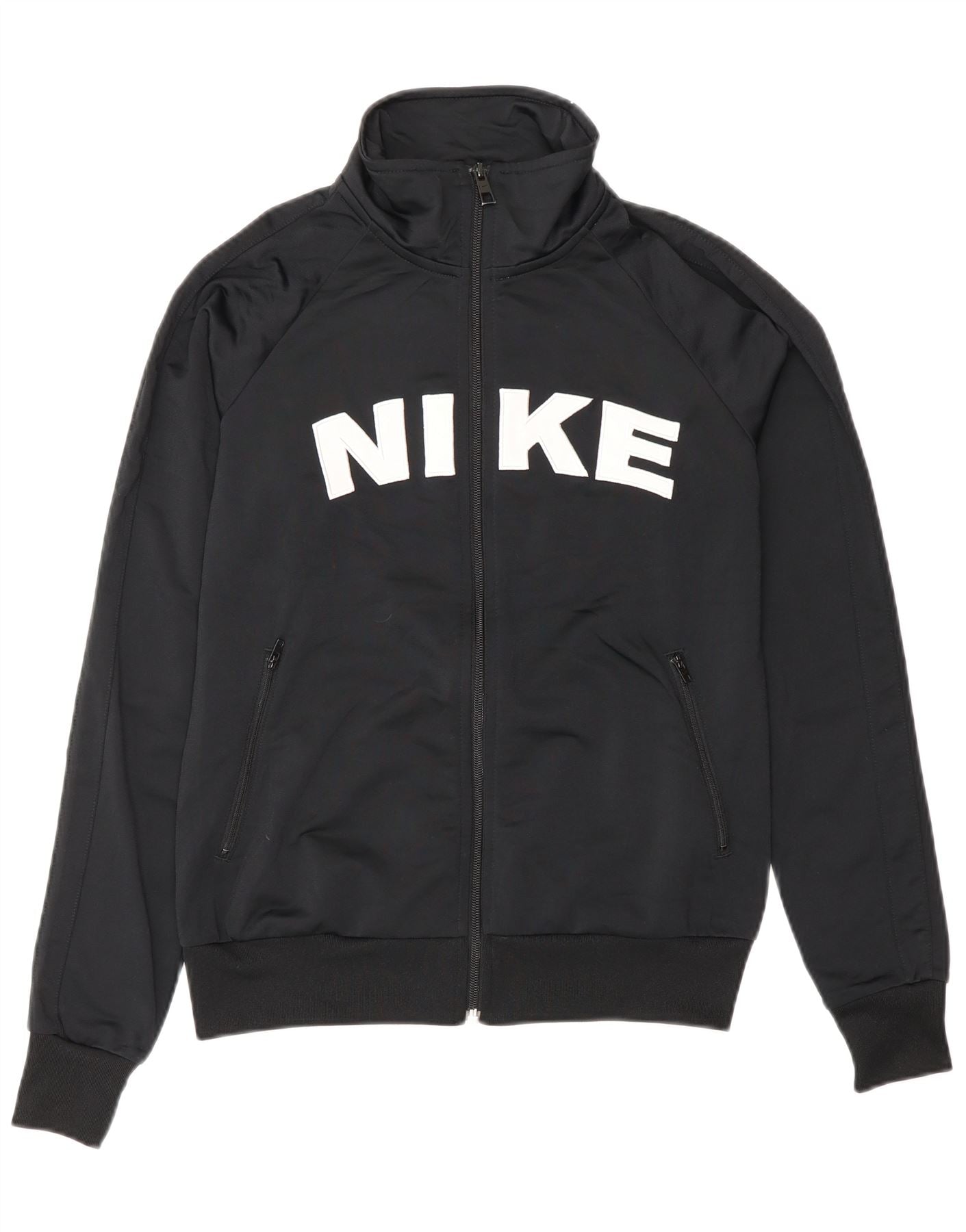 NIKE Womens Graphic Tracksuit Top Jacket UK 14 Medium Black Polyester