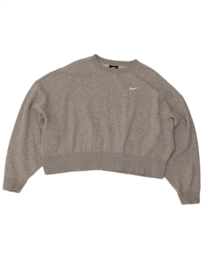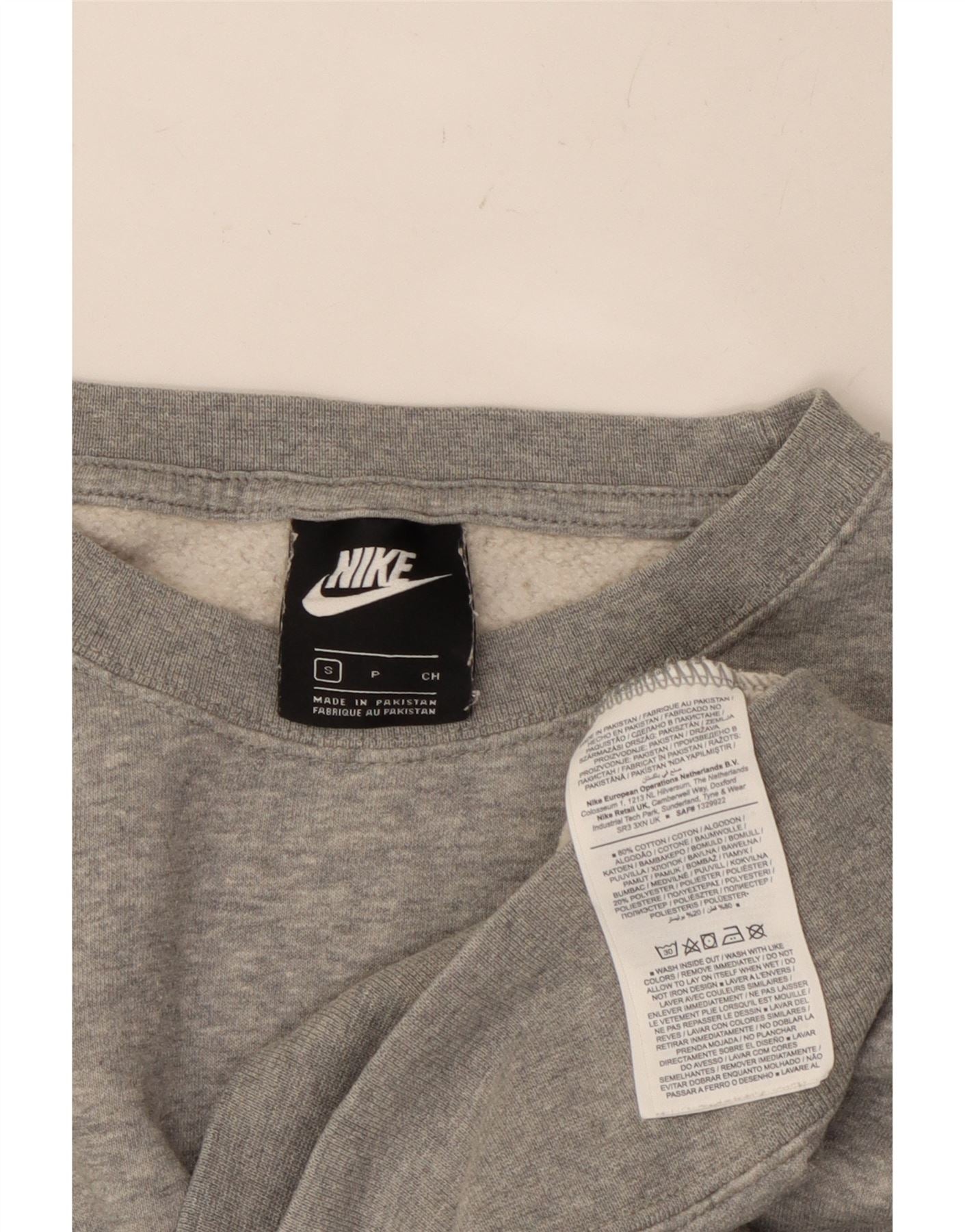 NIKE Womens Oversized Crop Sweatshirt Jumper UK 10 Small Grey Cotton