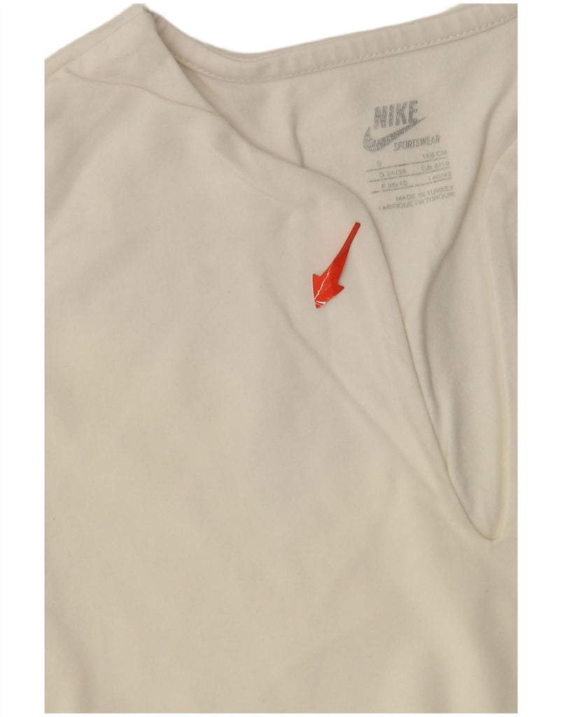 - AI Description: This Nike womens T-shirt top is crafted from a lightweight cotton blend, offering stretch and comfort. It features a classic V-neckline and short sleeves. The regular fit ensures ease of movement. A subtle logo accent adds a signature touch. This pullover style is perfect for sports or casual wear.