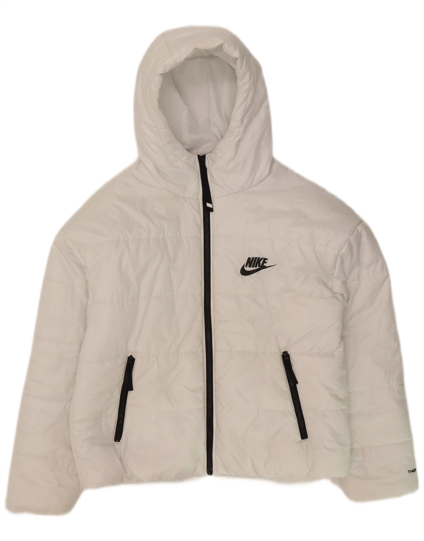 NIKE Womens Therma-Fit Hooded Padded Jacket UK 14 Medium White Polyester