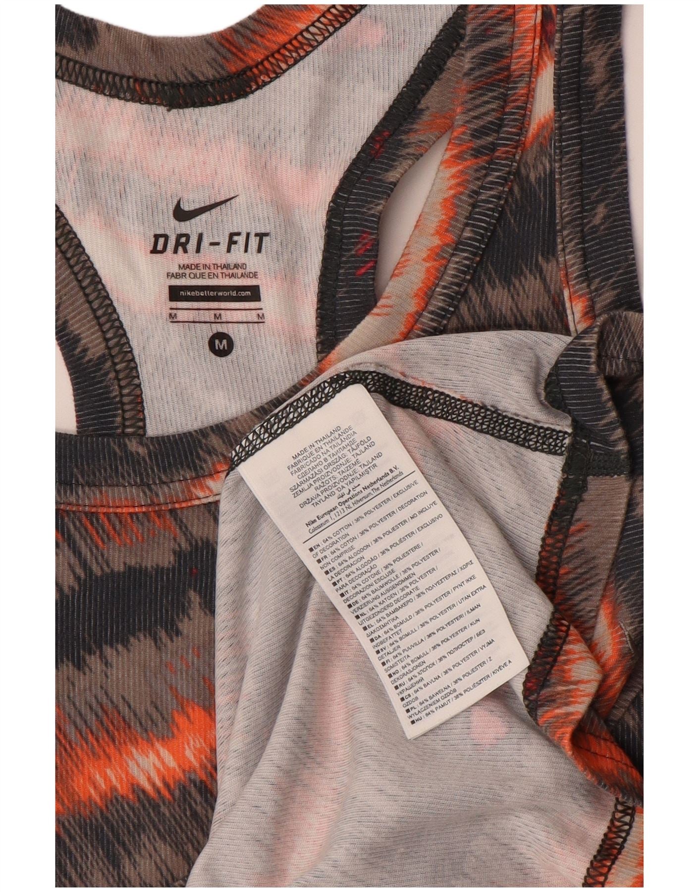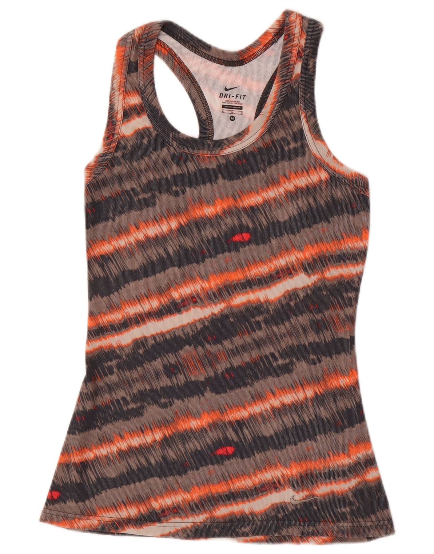 NIKE Womens Vest Top UK 12 Medium Multicoloured Striped Cotton Sports