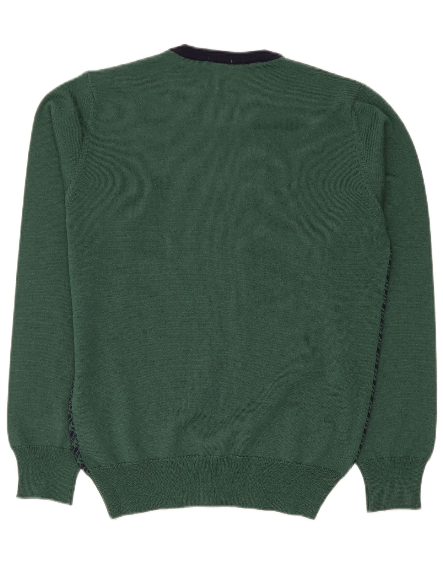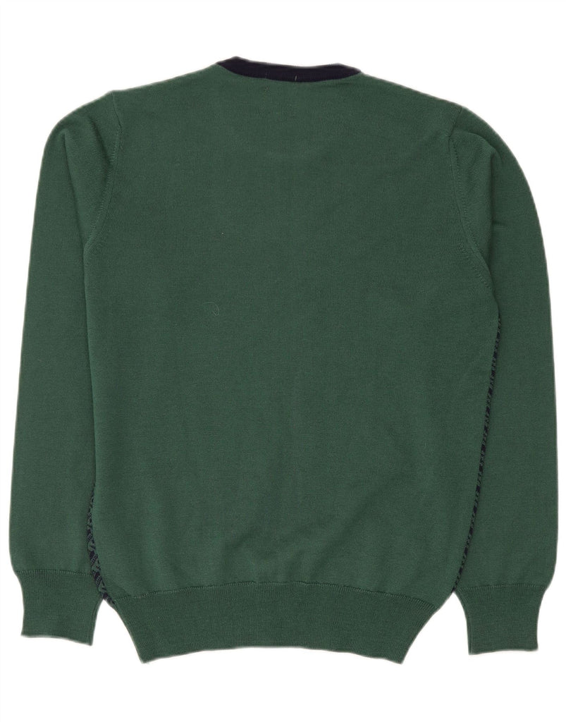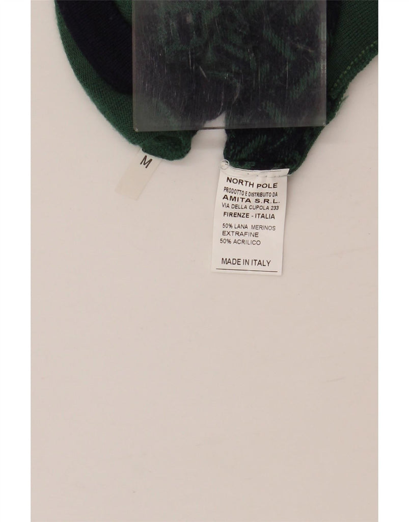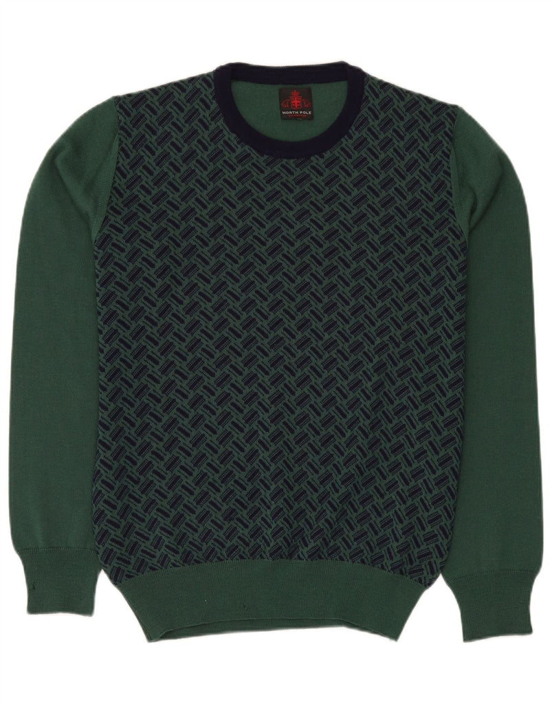 Męski sweter z okrągłym dekoltem NORTH POLE Średni zielony, geometryczny wełniany