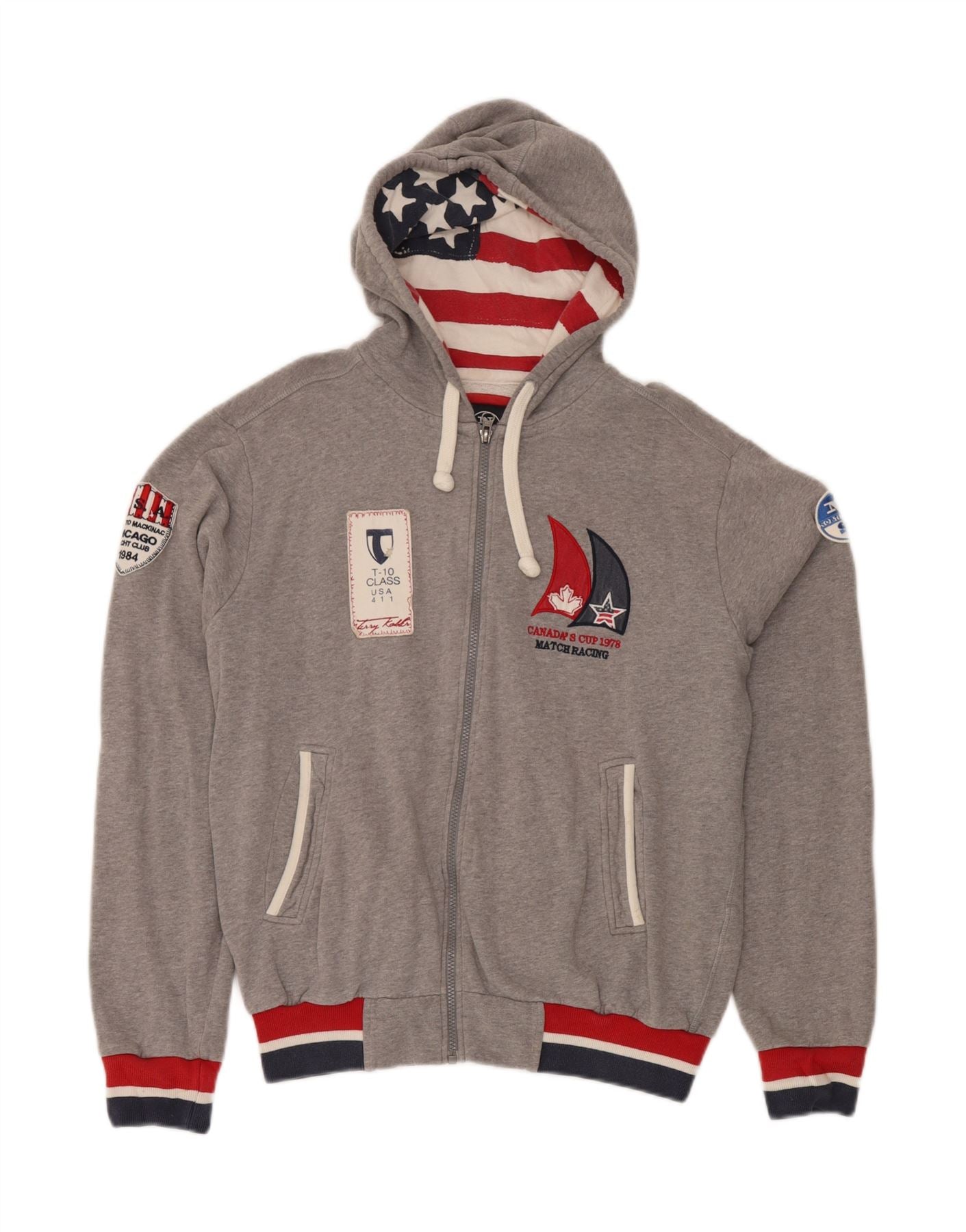 NORTH SAILS Mens Graphic Zip Hoodie Sweater Large Grey Cotton