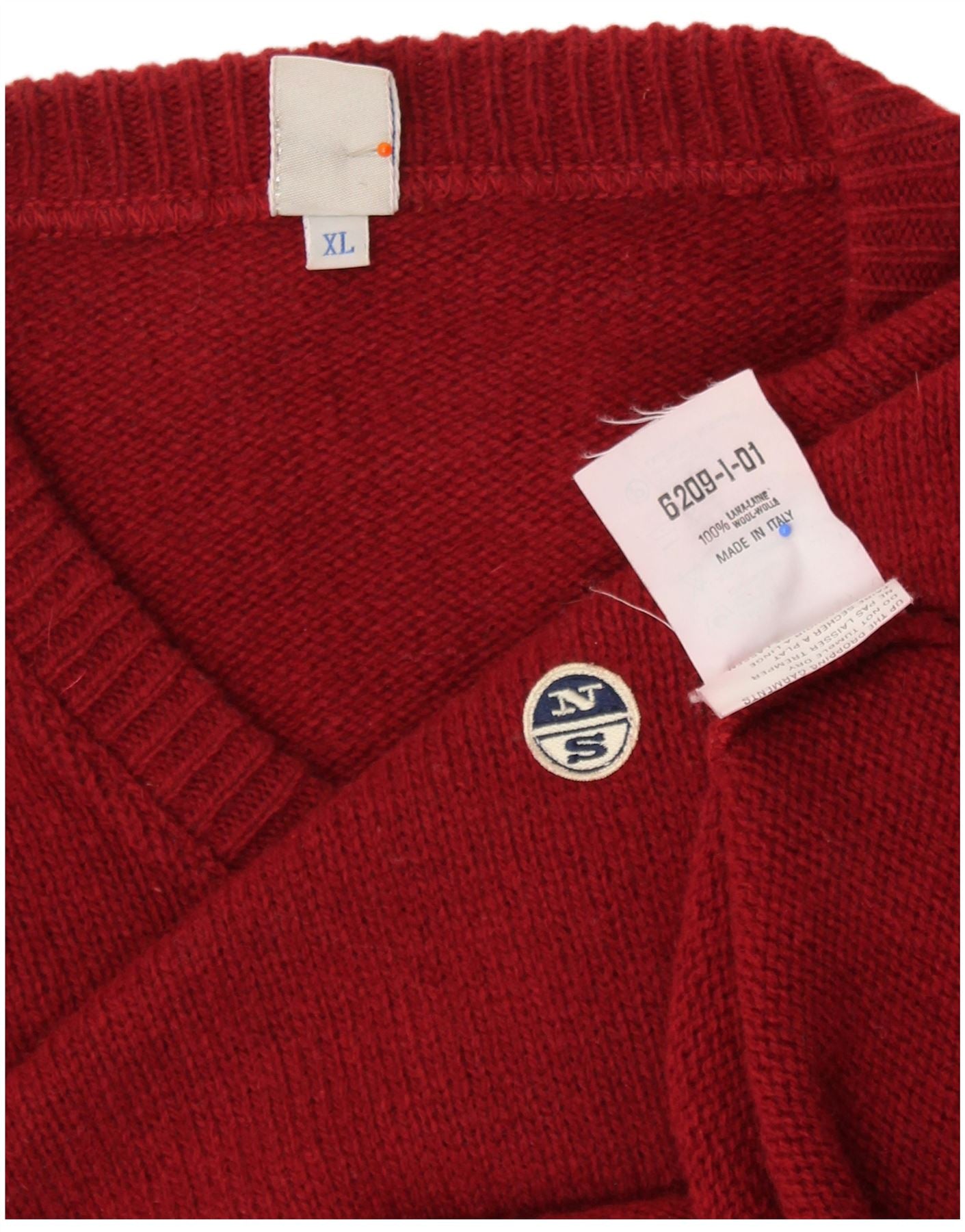 Męski sweter z dekoltem w kształcie litery V, XL, bordowa wełna, NORTH SAILS