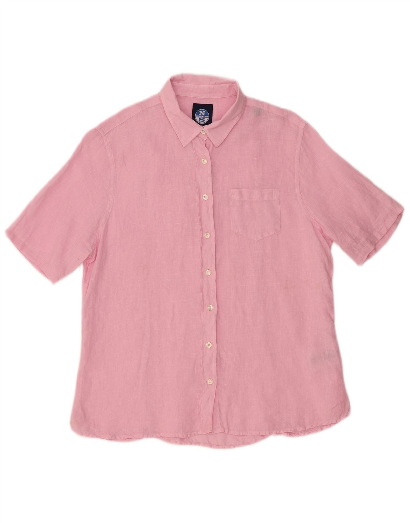 Damska koszula z krótkim rękawem NORTH SAILS UK 14, średnioróżowa, lniana