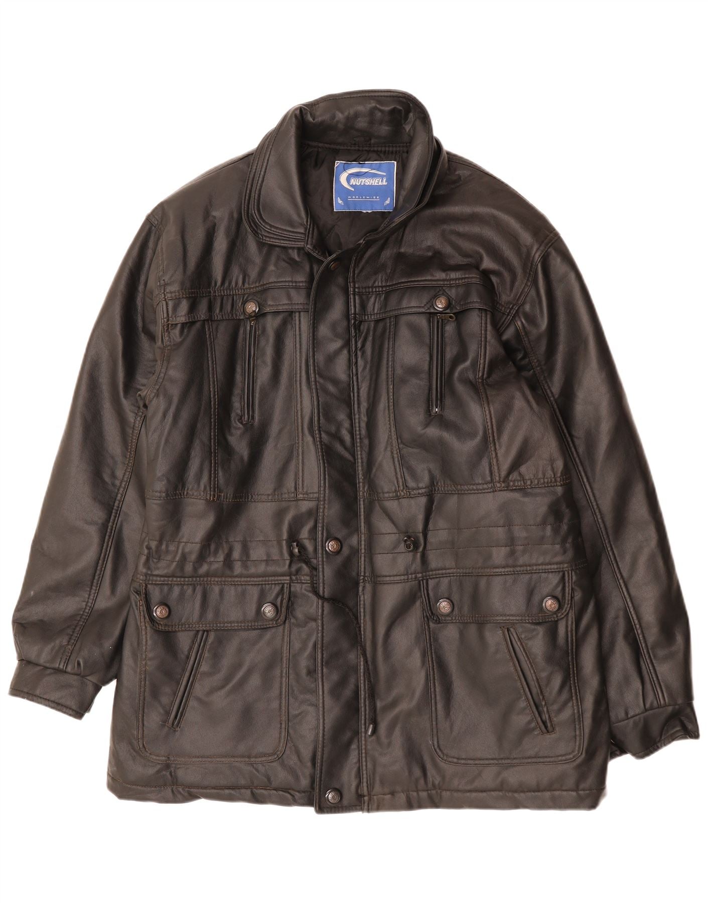 Męski płaszcz skórzany NUTSHELL UK 40, duży, czarny
