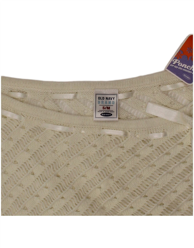 Damski sweter poncho bolerko OLD NAVY UK 8, mały, w kolorze złamanej bieli, w kwiatowe ramiączka
