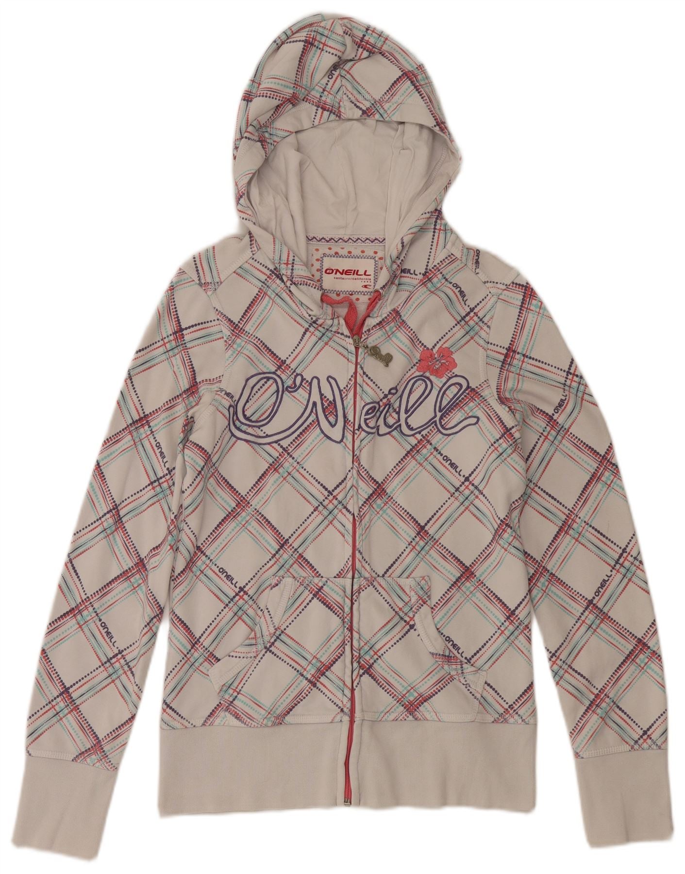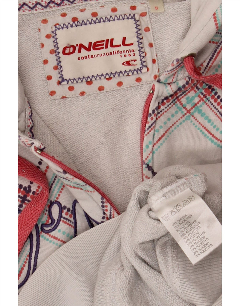 O'NEILL Womens Graphic Zip Hoodie Sweater UK 10 Small White Check Cotton