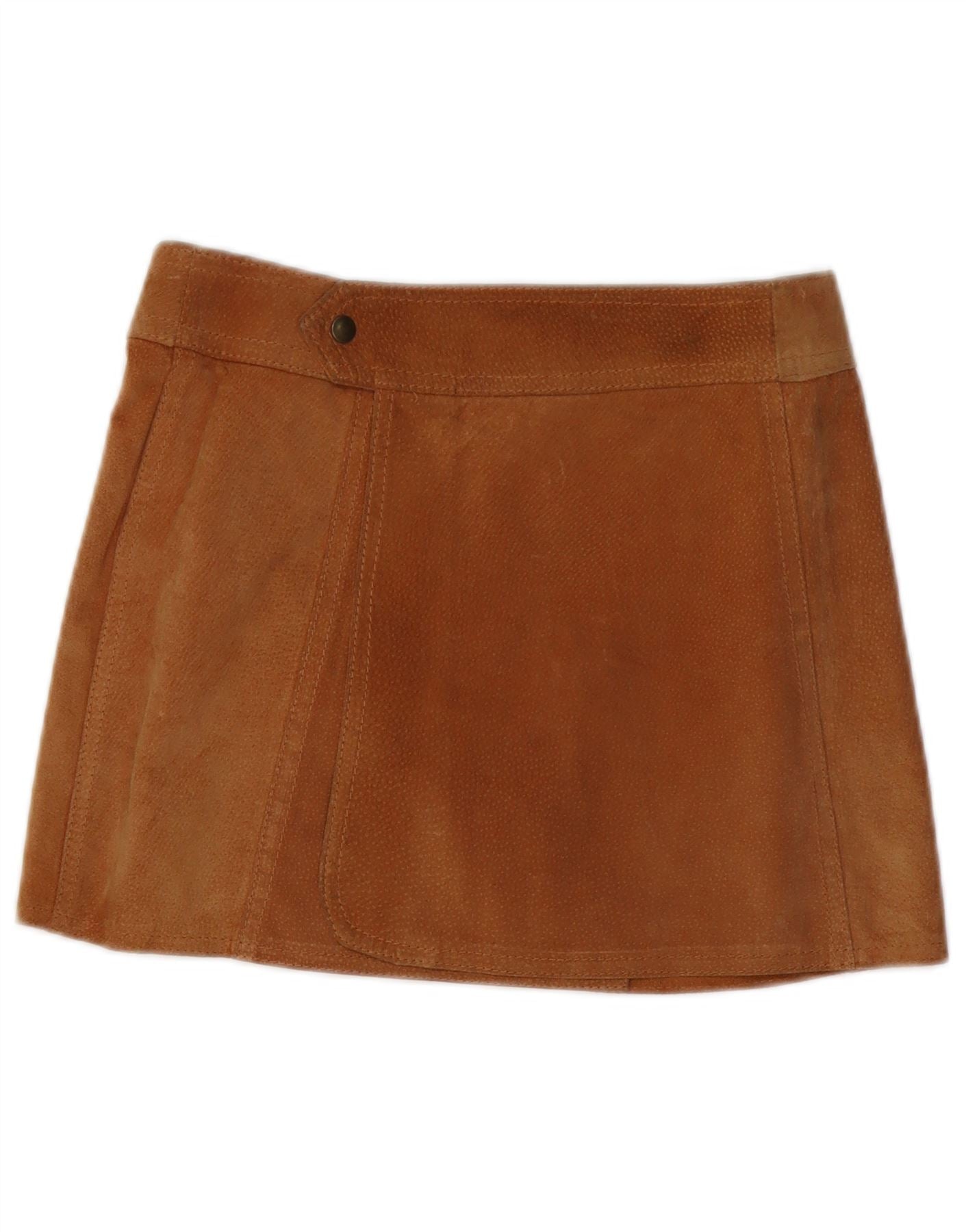 ONYX Damska zamszowa mini spódniczka kopertowa IT 42 Medium W28 Brązowa skóra