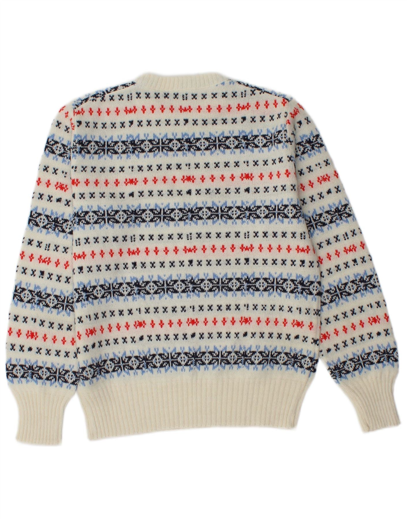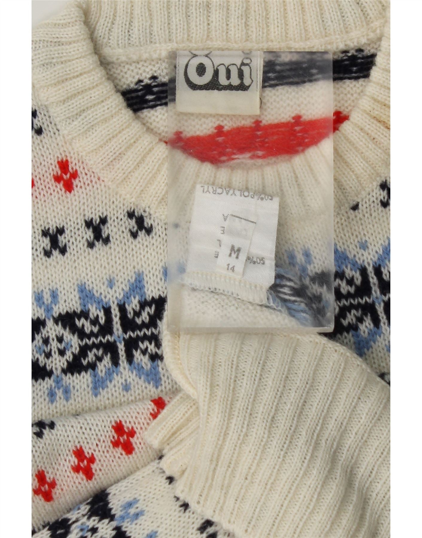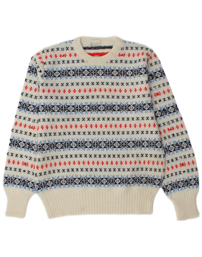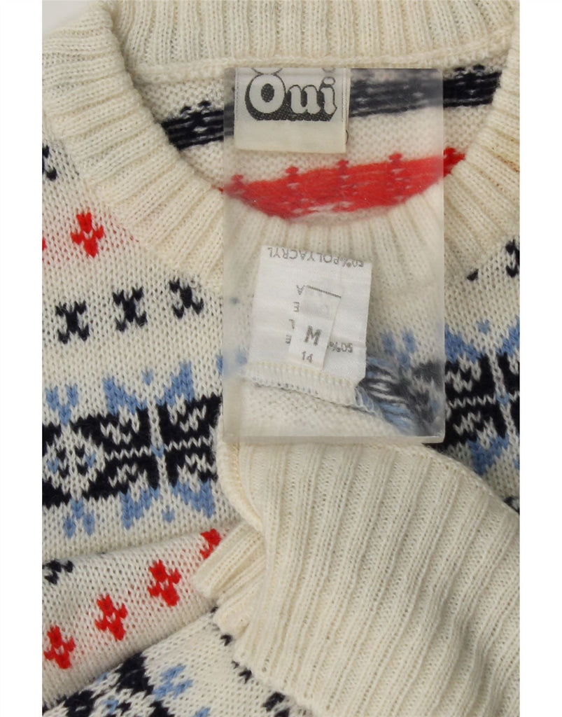 OUI Womens Crew Neck Jumper Sweater UK 14 Medium White Fair Isle Wool