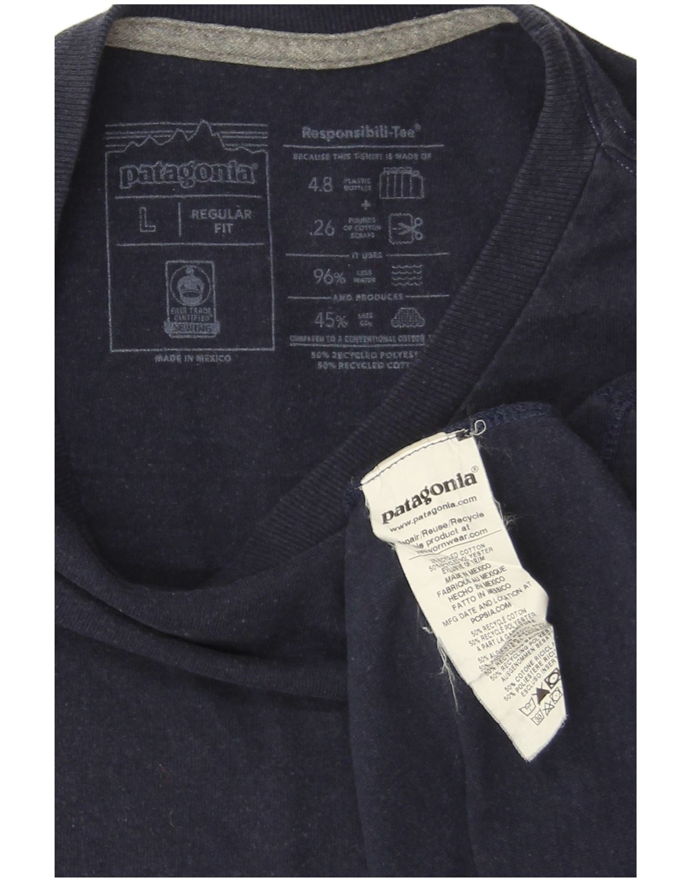 - Opis sztucznej inteligencji: Męski T-shirt z grafiką Patagonia Responsibili-Tee z długim rękawem jest wykonany z wygodnej, mieszanej tkaniny w kolorze granatowym. Jest wykonany w 50% z bawełny pochodzącej z recyklingu i w 50% z poliestru z recyklingu, dzięki czemu jest miękki i oddychający. Okrągły dekolt i długie rękawy zapewniają klasyczną sylwetkę. Małe logo Patagonii zdobi przód, a większy nadruk graficzny znajduje się z tyłu. Regularny krój zapewnia lekkość i wygodę podczas noszenia na co dzień.