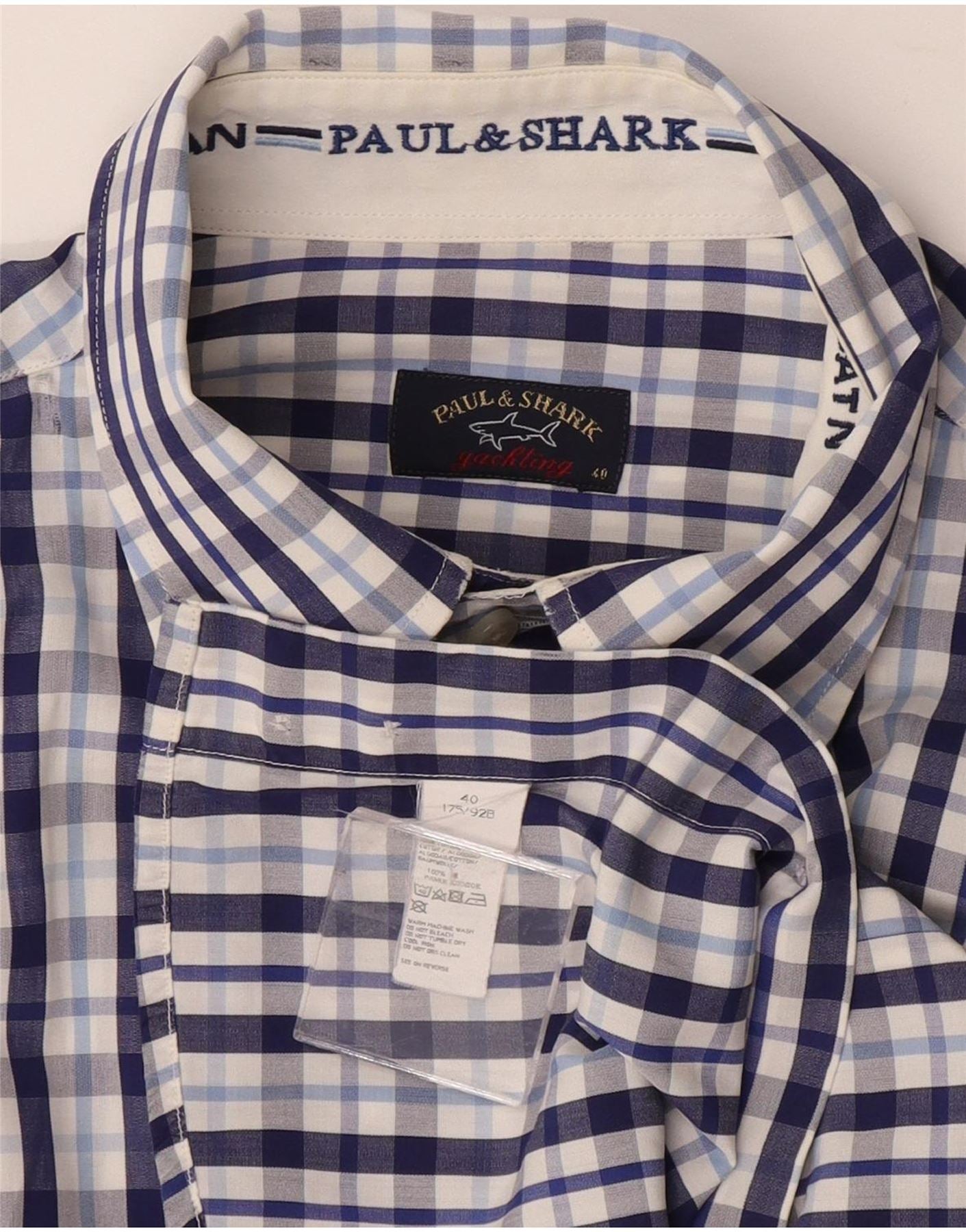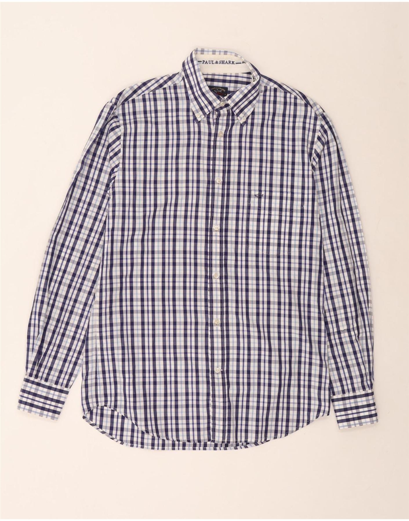Męska koszula w kratkę Paul & Shark, bawełniana, w średnią niebieską kratkę