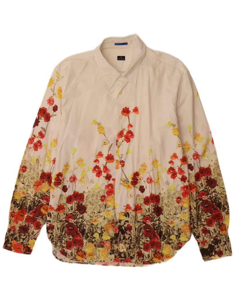 PAUL SMITH Koszula męska XL, biała, bawełniana w kwiaty