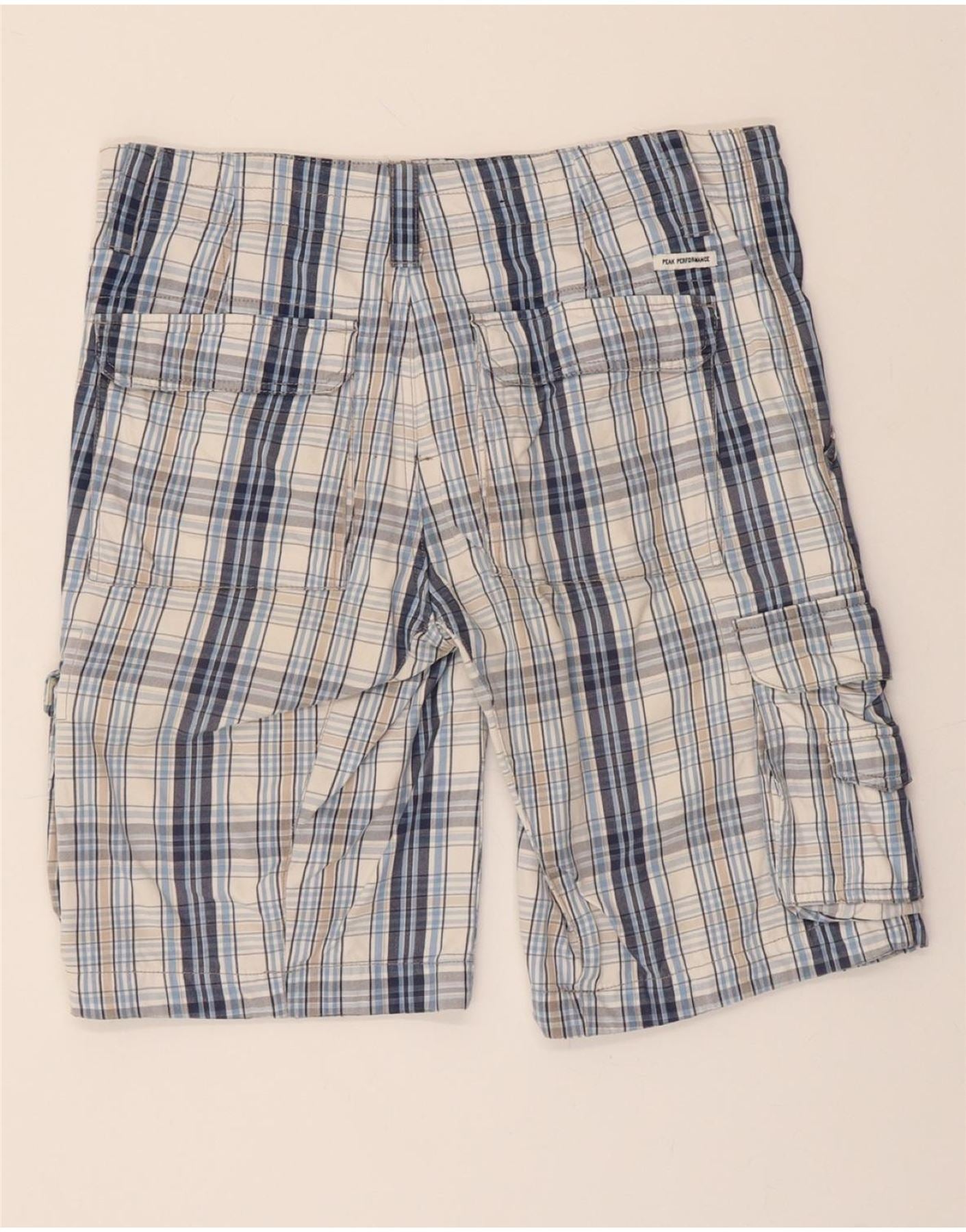 PEAK PERFORMANCE Mens Cargo Shorts W33 Medium Blue Check Cotton