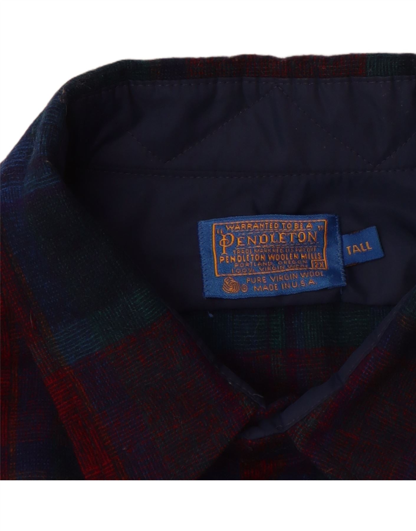 PENDLETON Męska wysoka koszula flanelowa 2XL wielobarwna krata z dziewiczej wełny