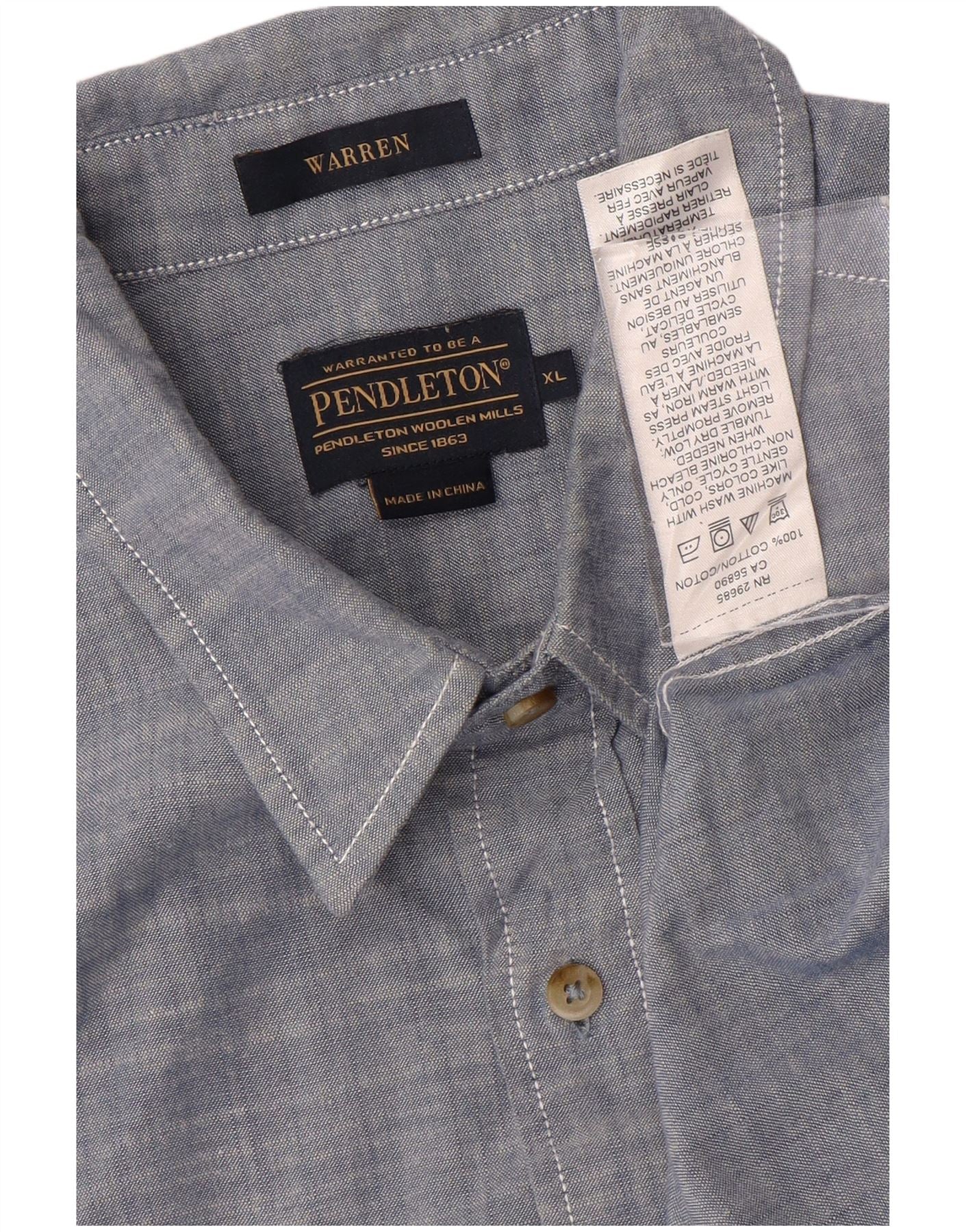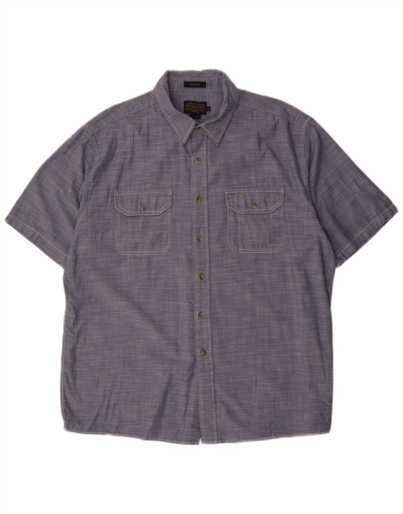PENDLETON Mens Warren Short Sleeve Shirt XL Navy Blue Flecked Cotton