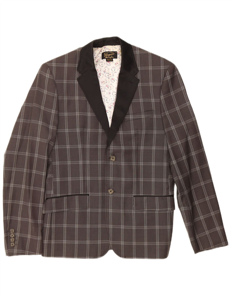 PENGUIN Mens 2 Button Blazer Jacket UK 38 Medium Grey Check Wool
