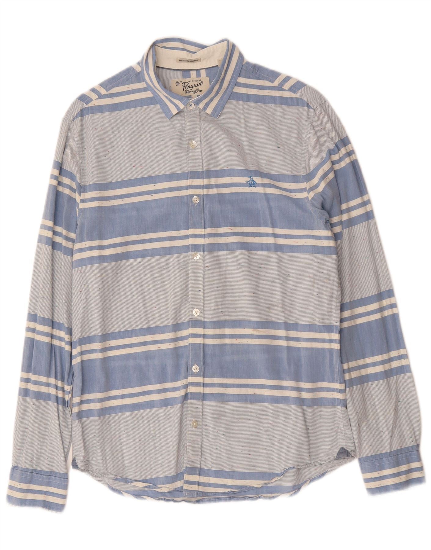 PENGUIN Męska koszula o dopasowanym kroju Heritage, bawełniana w średnie niebieskie paski