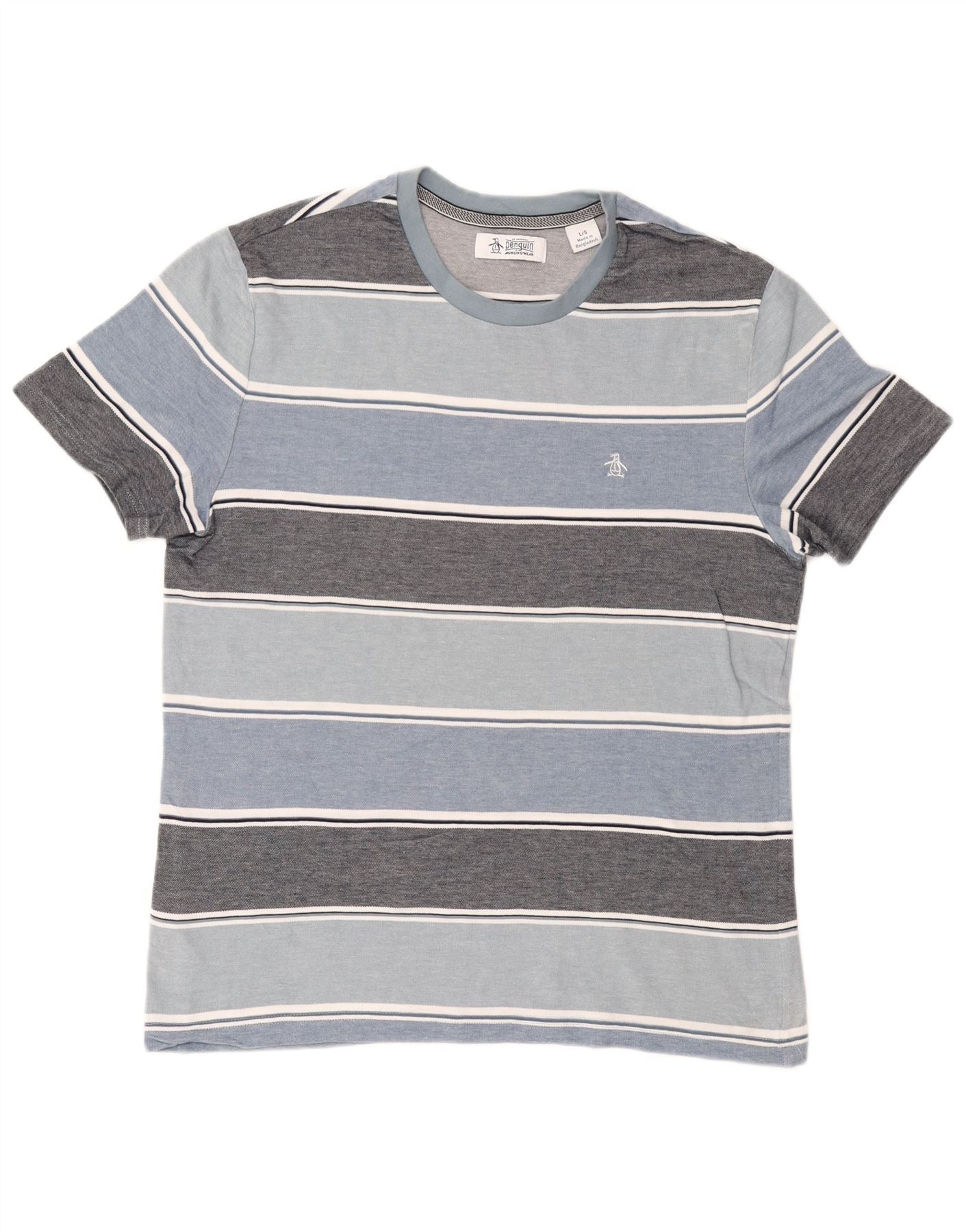 PENGUIN Męski T-shirt Top z bawełny w duże niebieskie paski
