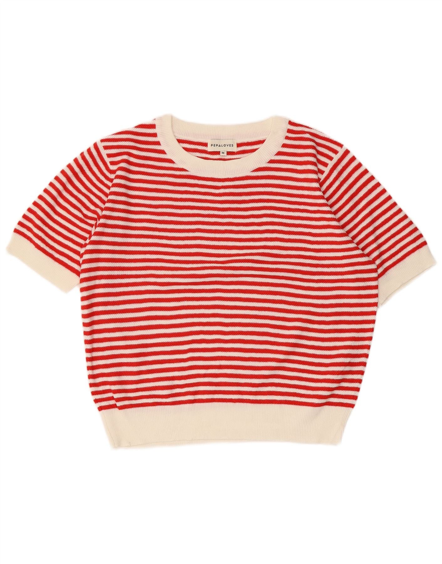 Damski sweter z okrągłym dekoltem PEPALOVES UK 14 w średnie czerwone paski