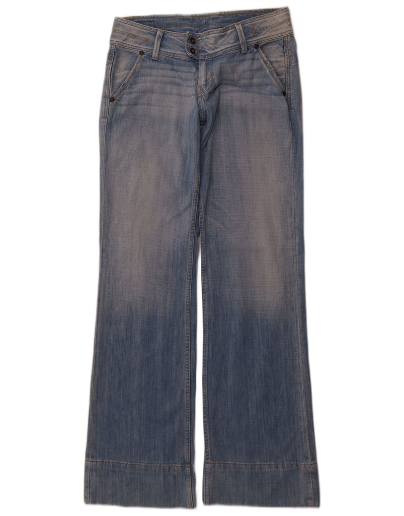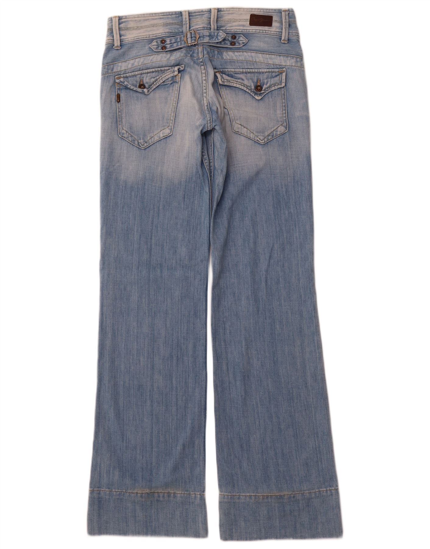 - AI Description: These PEPE Jeans women's wide leg jeans are crafted from blue denim, made from 100 percent cotton. They feature a low waist and a button closure for a classic look. The loose fit and wide leg design offer a relaxed silhouette. Cuffed hems add a stylish detail. Practical pockets complete the design, ensuring both comfort and a contemporary aesthetic.