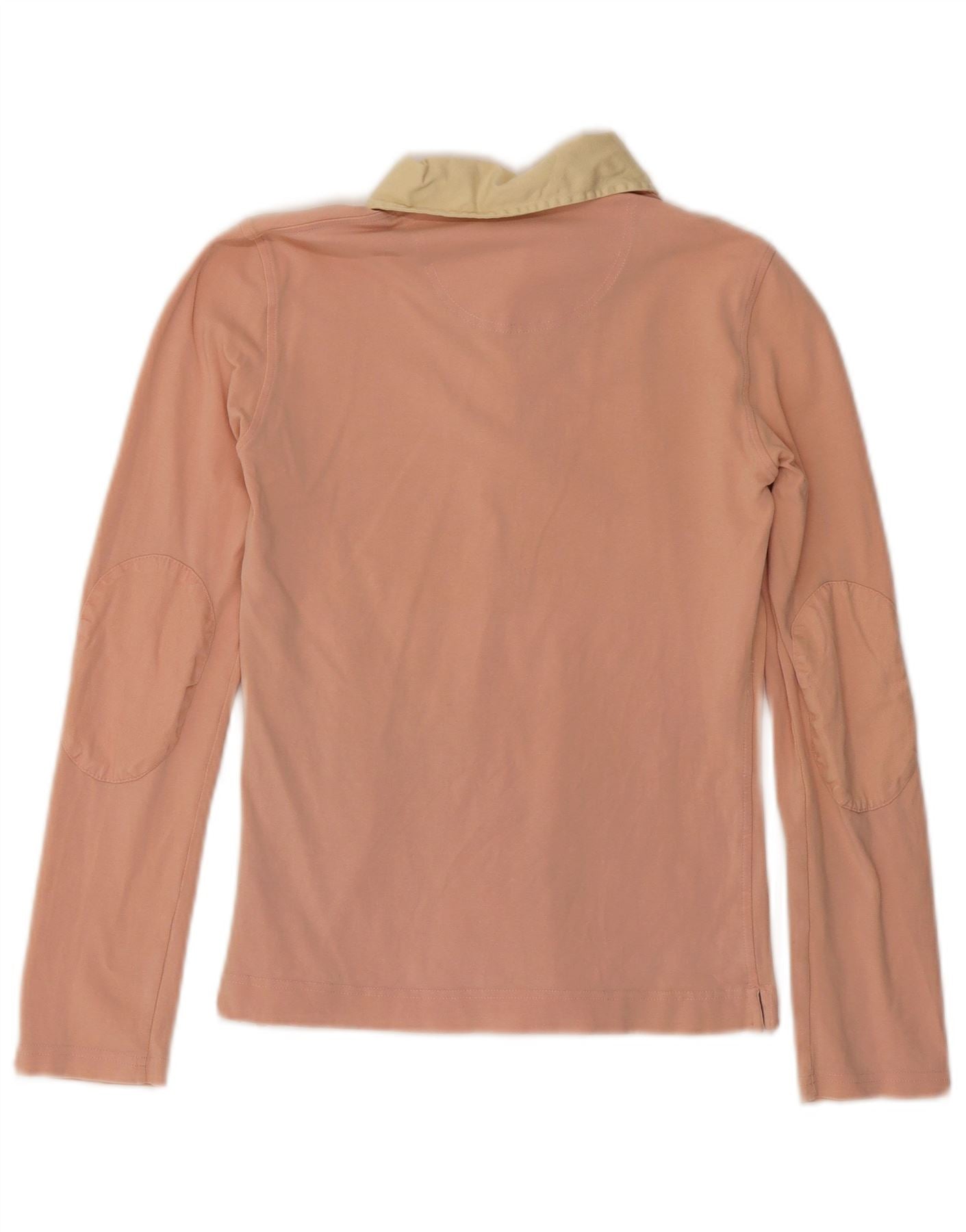 PEPE JEANS Womens Graphic Long Sleeve Polo Shirt UK 12 Medium Pink Cotton