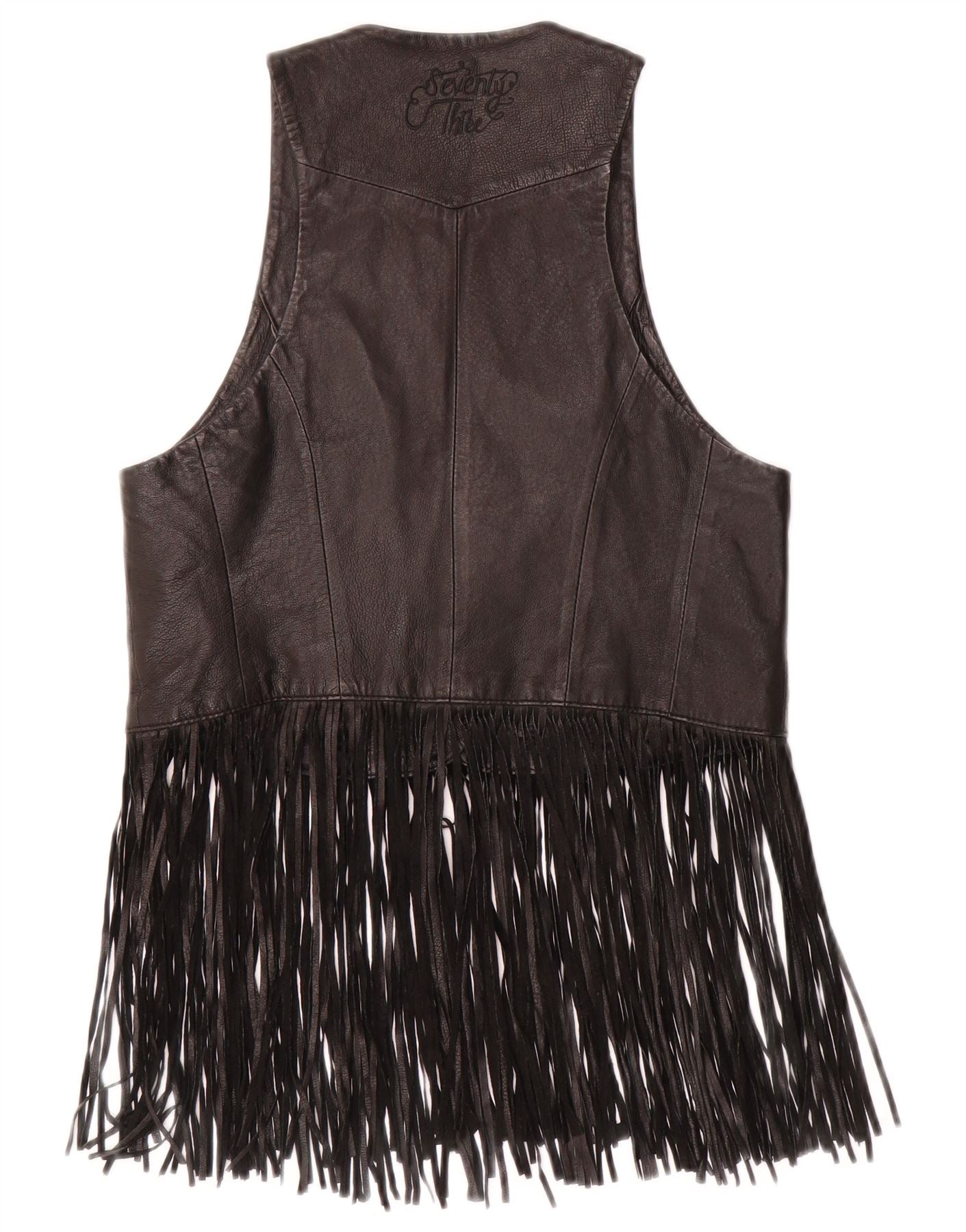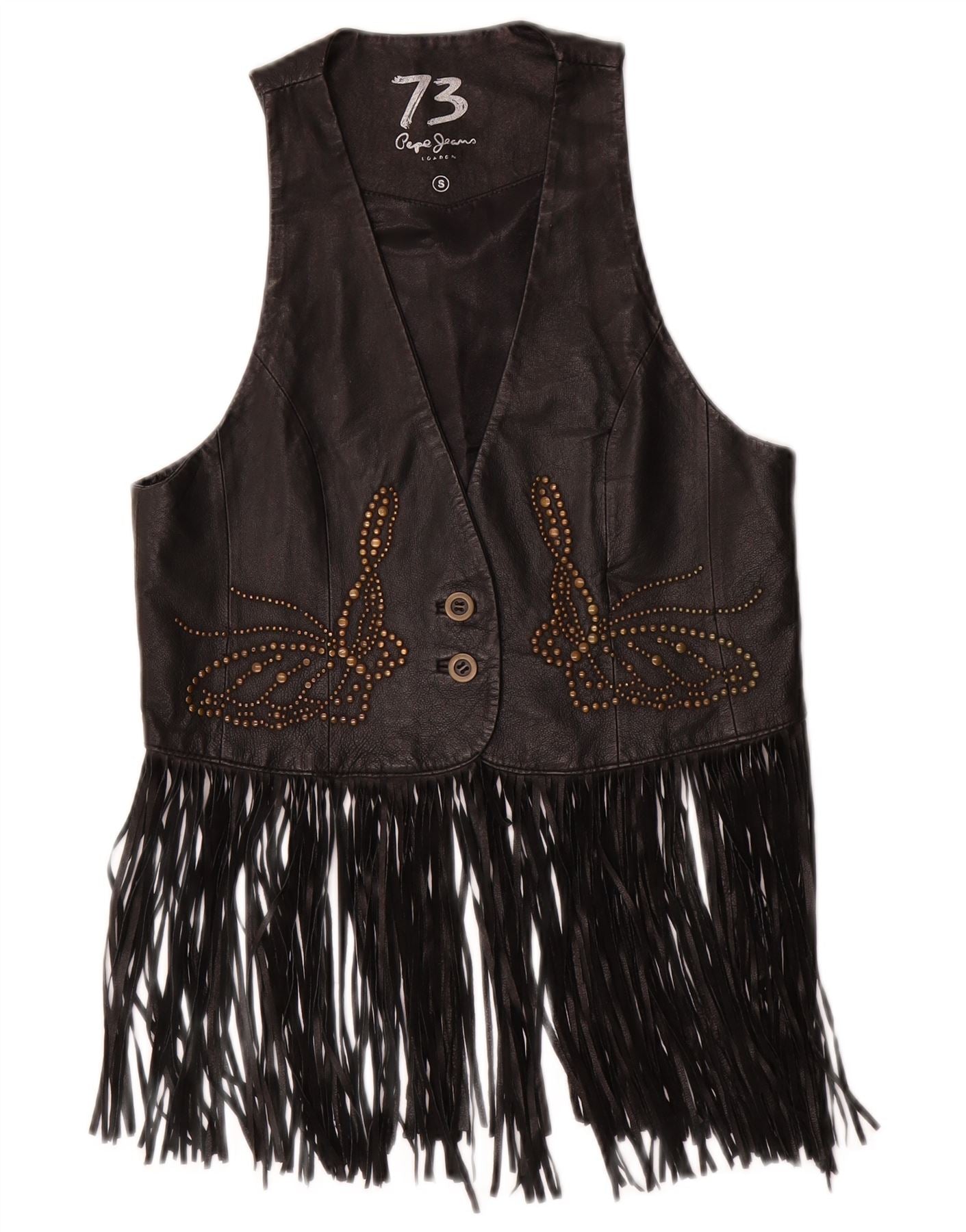PEPE JEANS Damska kamizelka skórzana UK 10 Mała czarna skórzana kowbojka