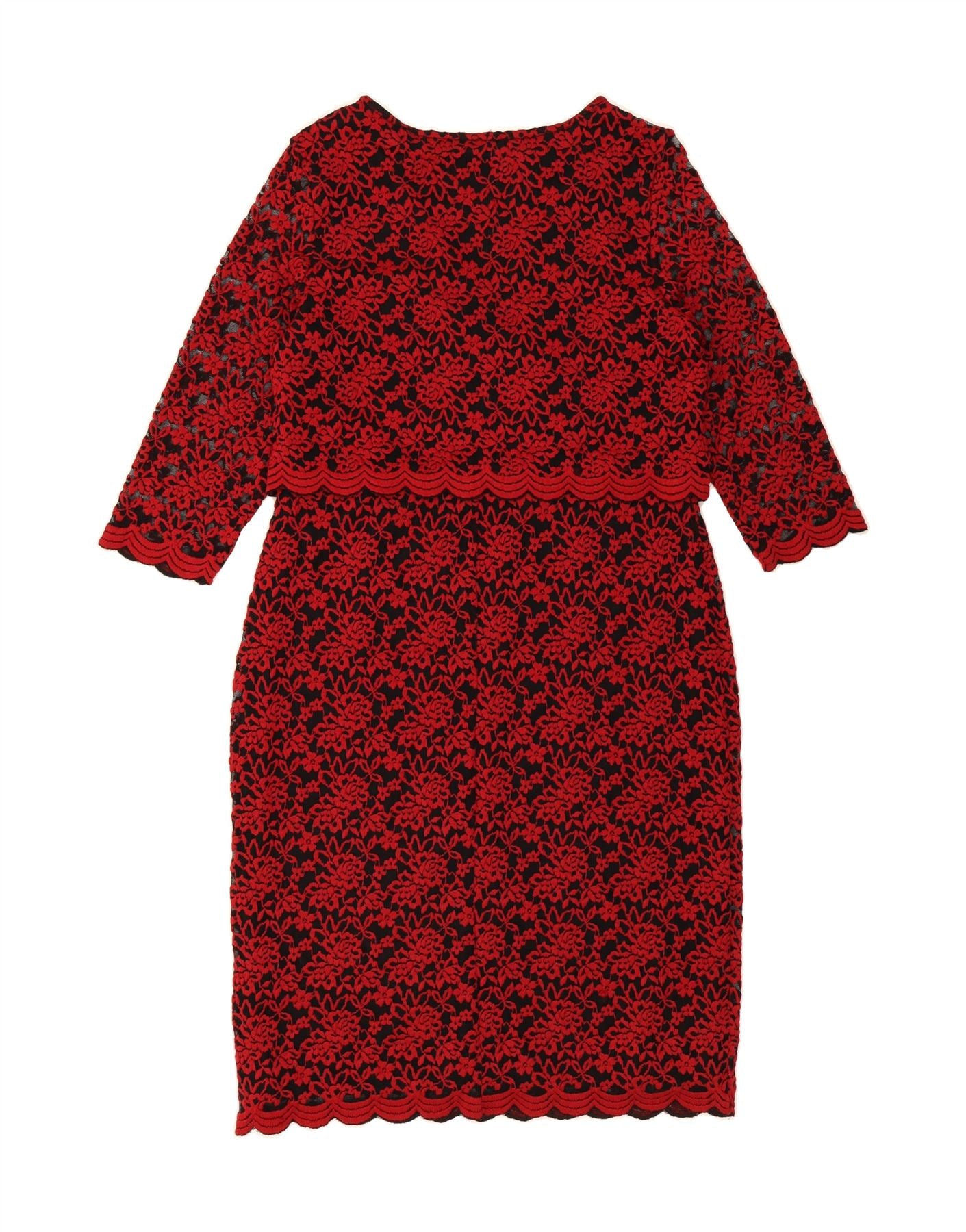 PER UNA Womens 3/4 Sleeve Sheath Dress UK 18 XL Red Floral Polyamide