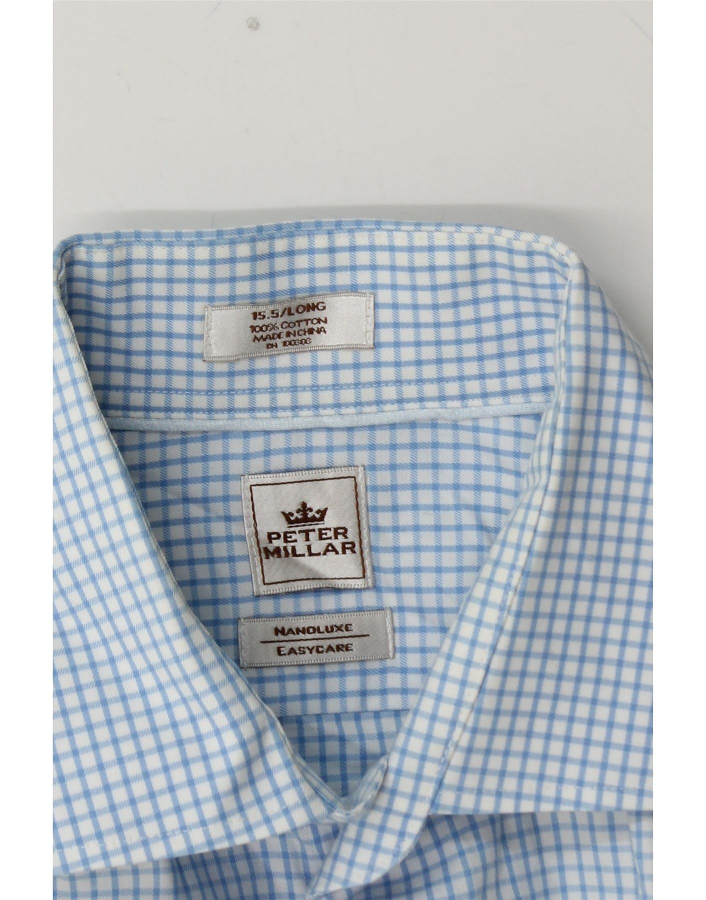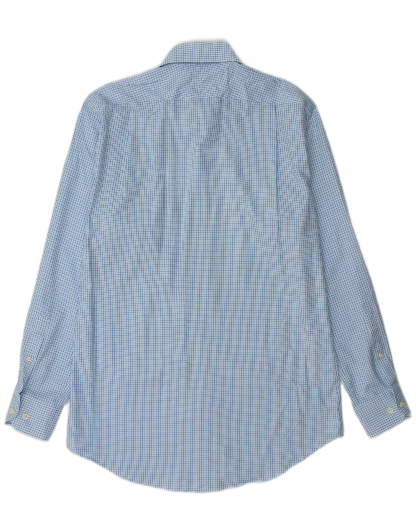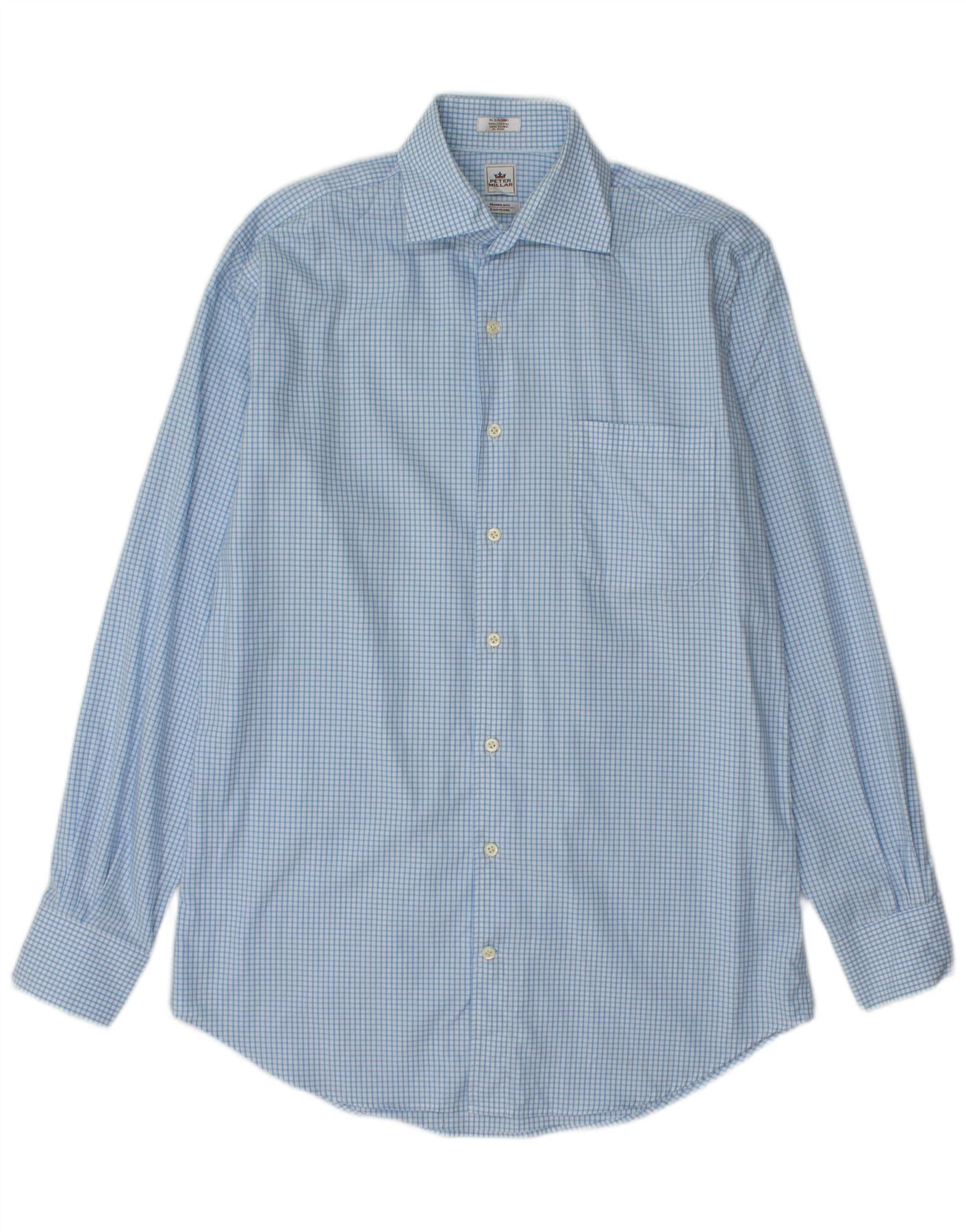 PETER MILLAR Męska długa koszula, rozmiar 15, 5, średnia niebieska bawełniana kratka