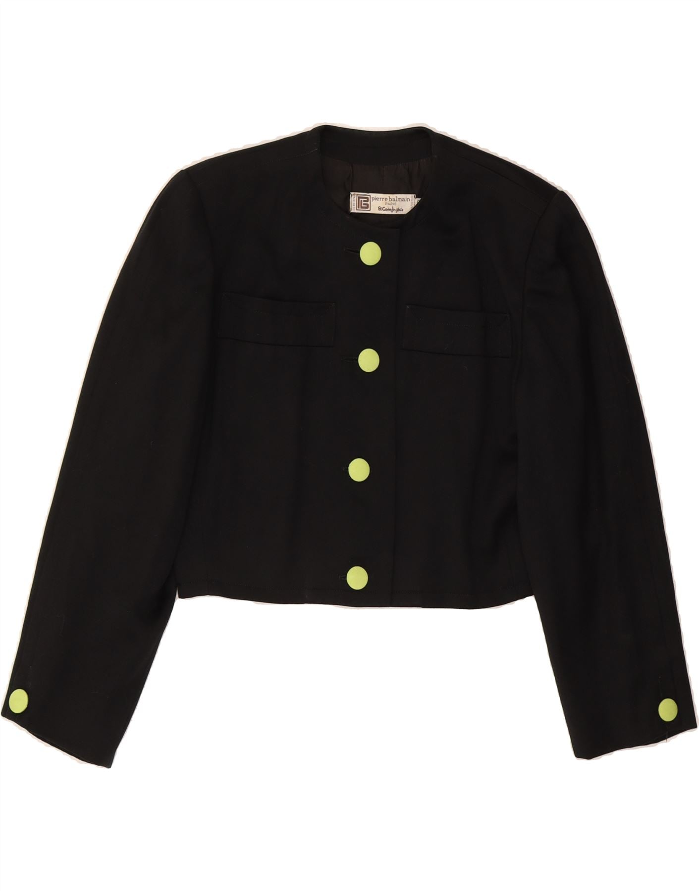 PIERRE BALMAIN Womens Crop 4 Button Blazer Jacket IT 38 XS Black