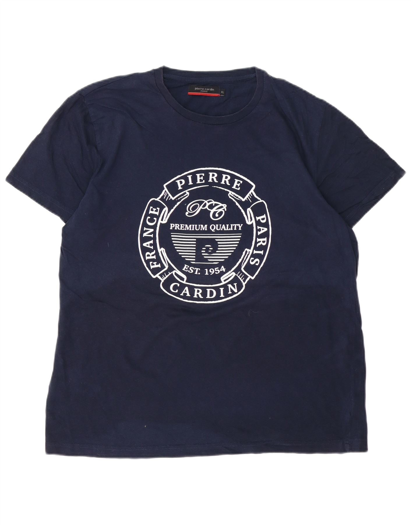 Męska koszulka z grafiką PIERRE CARDIN, góra XL, granatowa, bawełniana